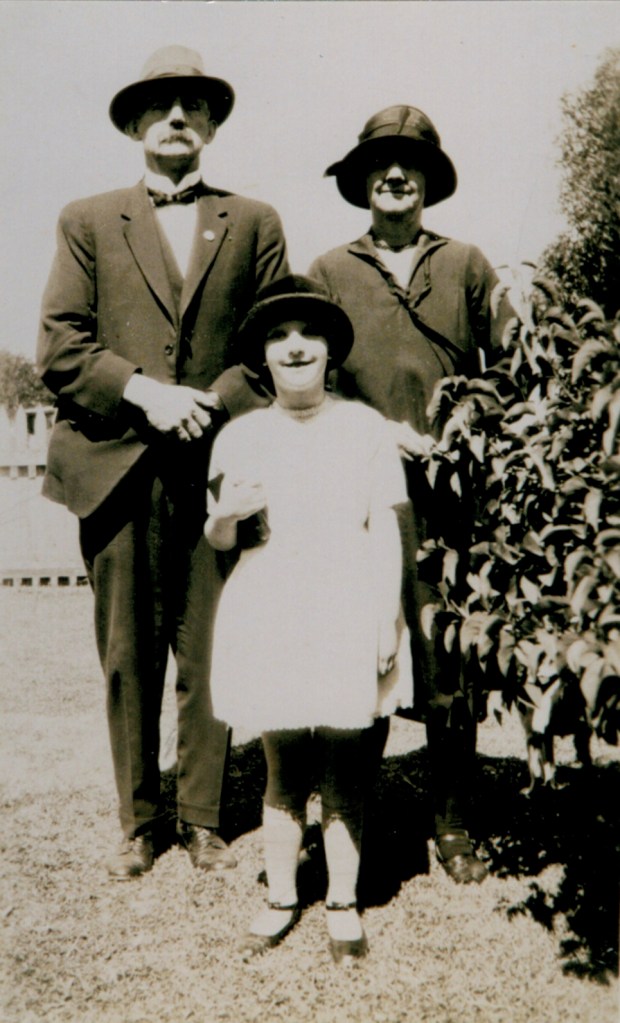 Harry and Nellie Bawden (Bown) with June, (later Schubert), photographed going to church, Warracknabeal, Vic., c. late 1920s [Doff Mullan (Martin)].