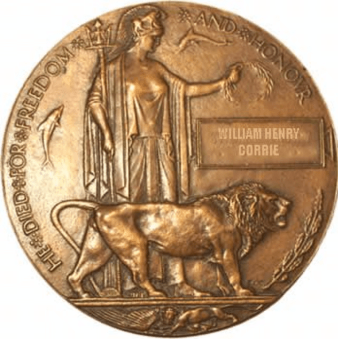 1.2.2 CORRIE William Henry (Kenealy) 1.2.2.1 CORRIE Francis William1.2.2.2 CORRIE Williamย John (?)1.2.2.3 CORRIE Edna May1.2.2.4 Corrie (unnamed) Published references (1.2.2 CORRIE) Documents and Memorabilia (1.2.2 CORRIE) William Corrie [Australian National War Memorial]. Grave marker for William Corrie, Shrapnel Valley Cemetery, Canakkale (Gallipoli), Tuฬrkiye [Find a Grave]. Memorial plaque (Dead Man’s Penny) for William Corrie [Find a Grave].