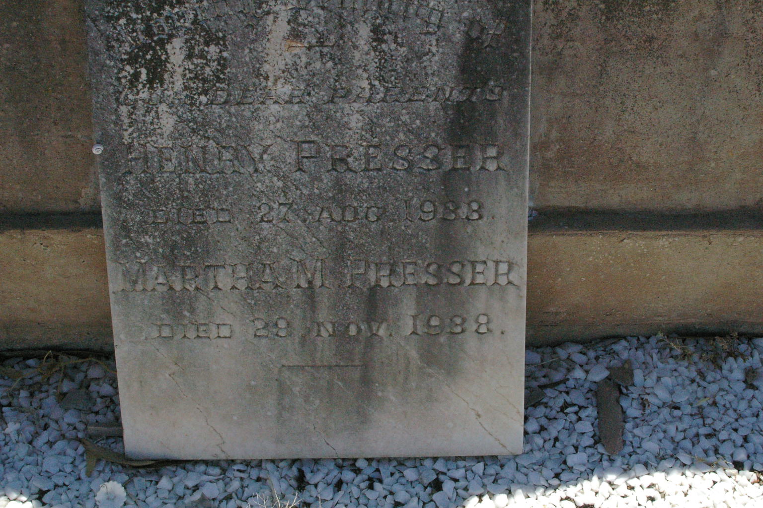 1.2.7 PRESSER Henry (Gust) 1.2.7.1 PRESSER Louisa Mathilda (JANETZKI)1.2.7.2 PRESSER Charles Henry Paul1.2.7.3 PRESSER Clara Alwina Ida (JANETZKI)1.2.7.4 PRESSER Dora Alma (HANNEL)1.2.7.5 PRESSER Robert Julius Otto (Boehm)1.2.7.6 PRESSER Bertha Sophia (DUNCAN) Published References (1.2.7 PRESSER) Headstone for Henry and Martha Presser (Gust), Murtoa Cemetery, Vic. [Carol’s Headstone Photographs].
