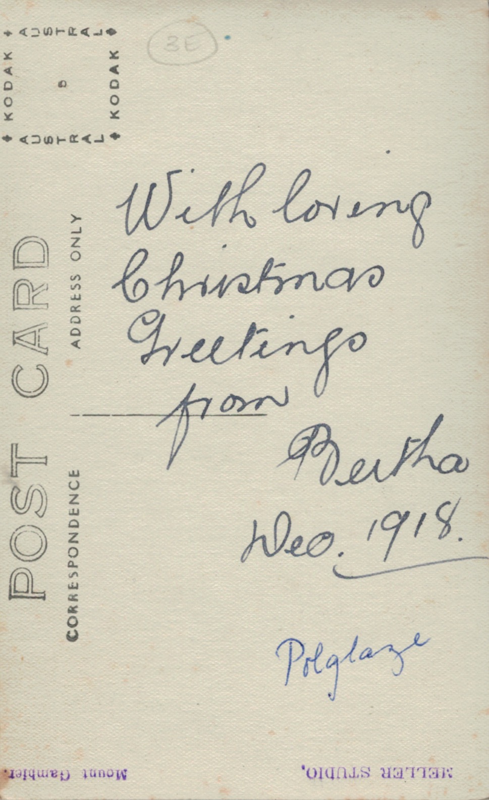 Bertha Reinecke (later Polglase), December 1918 (Meller Studio, Mount Gambier) Mount Gambier) [Irma Russell (Schache)].