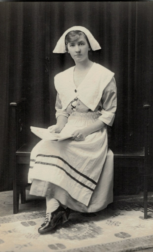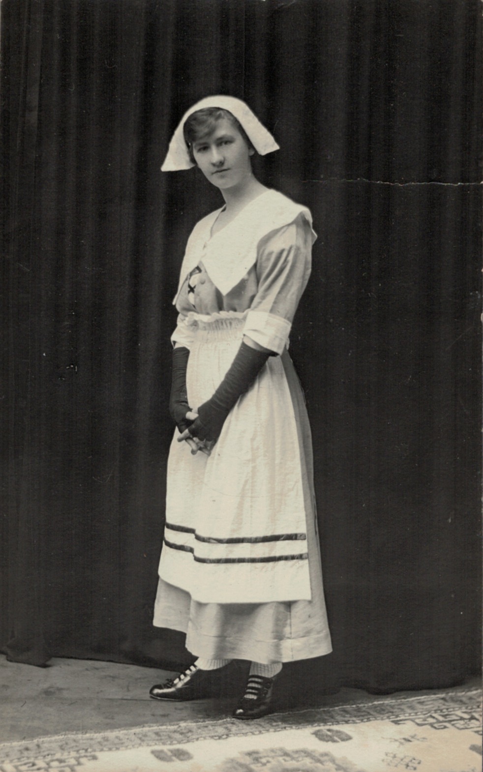 Bertha Reinecke (later Polglase), dressed as a “Quaker Girl”, 25 April 1917 (Meller Photo Studios, Mount Gambier) [Irma Russell (Schache)].