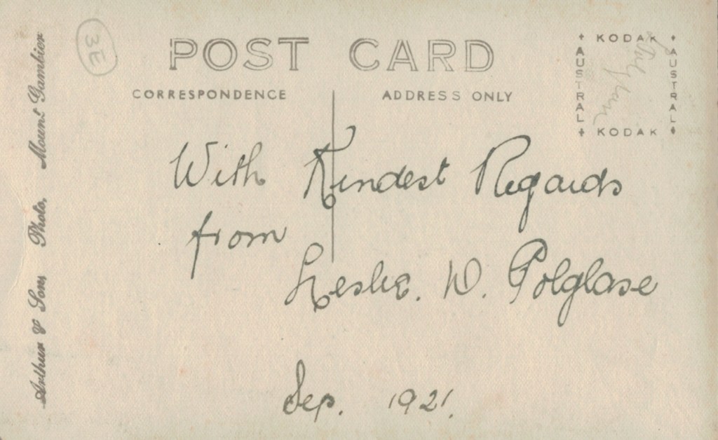 Les Polglase, September 1921 (Arthur & Son Photo, Mount Gambier) [Irma Russell (Schache)].