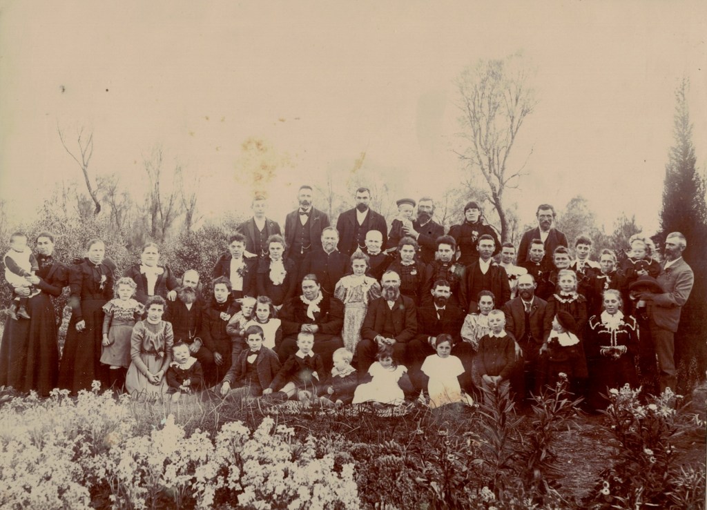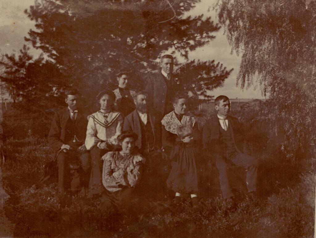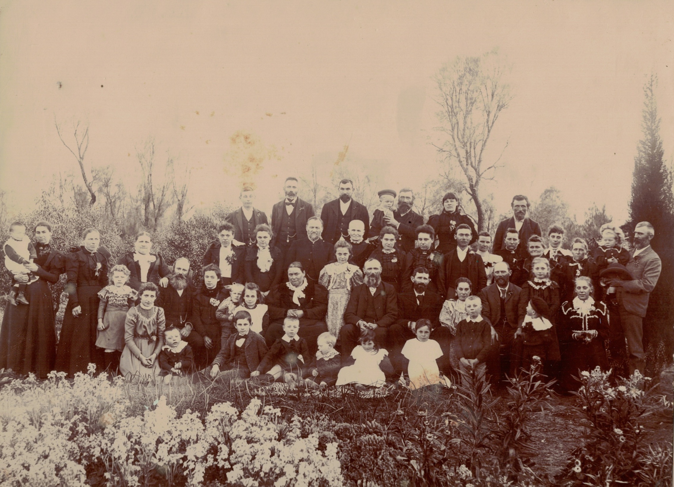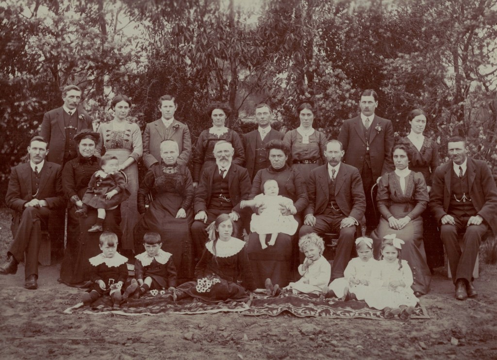 Fred and Annie Adler (Schache), probably photographed on their honeymoon, 1905, (Arthur & Son Mount Gambier).Adler siblings with their uncle and aunt, Gottlieb and Emma Schache (Schulz), seated centre; standing, Minnie and August Schubert; seated far left, Fred and Bertha Schache; seated far right, Henry; Ciss sitting foreground; โMayfairโ, Jung North via Murtoa Vic. [David Schache].Fred Adler and family, “Sheoak Bank”, Coromby via Murtoa Vic., 1913: standing L-R, Walther Schubert, Winnie Adler (later Schubert), Carl Adler, Frieda Adler (later Schulz), Henry Adler, Ciss Adler, Ossie Schache, Selma Adler (later Schache); seated L-R, August Schubert, Minnie Schubert (Adler), nursing Bert Schubert), Annie Adler (Schache), Fred Adler, Sophie Meadows (Adler, nursing George Meadows), Jack Meadows, Bertha Schache (Adler), Fred Schache; children at front L-R, Eddie Schubert, Vic Schubert, Mary Meadows (later Quincey), Leslie Meadows, Mary Schache and Tess Schache [E. F. Schroeder, Photo, Murtoa].