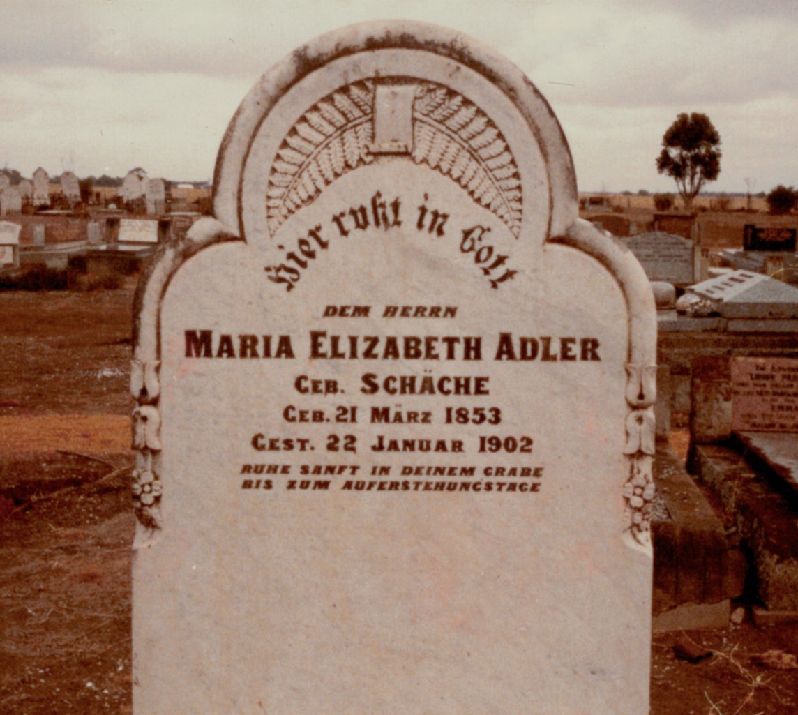 Headstone for Lizzie Adler (Schache), Murtoa Cemetery, Vic. Also buried in this grave are Fred Adler, Annie Adler (Schache) and Ciss Adler [Eric Uebergang].