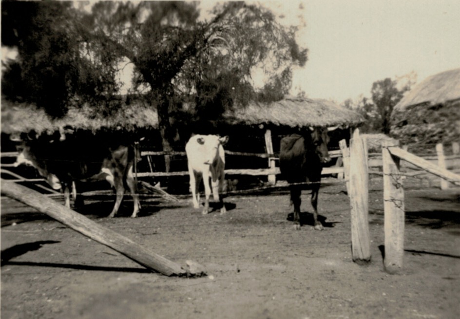 Fowl pen and cows, “Sheoak Bank”, Coromby via Murtoa Vic., (O. Schache, Amateur Photo, Murtoa) [Tess Hausler (Schache)].