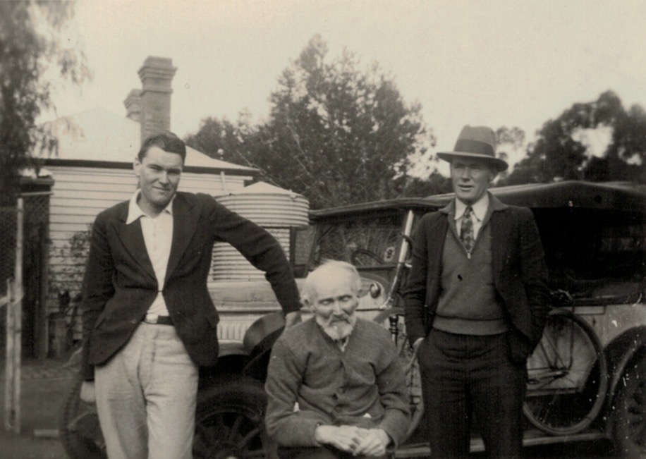 Fred Adler with Carl Adler and son Gordon, c. early 1930s, Comyn Street, Murtoa, Vic. [Tess Hausler (Schache)].