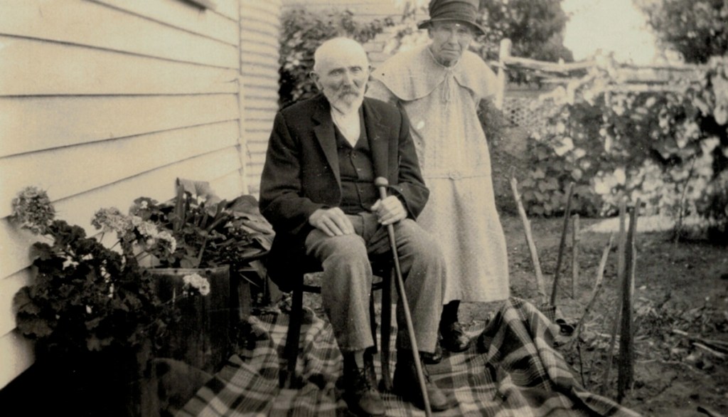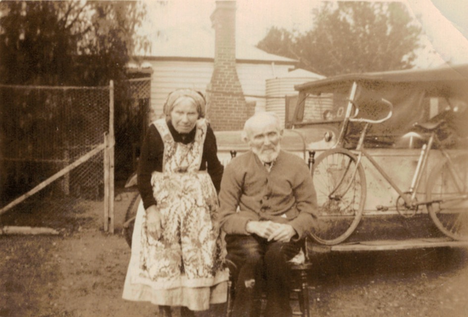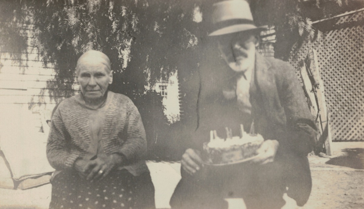Fred and Annie Adler (Schache) on Fred’s 81st birthday, February 1931, Comyn Street, Murtoa, Vic. [Tess Hausler (Schache)]
