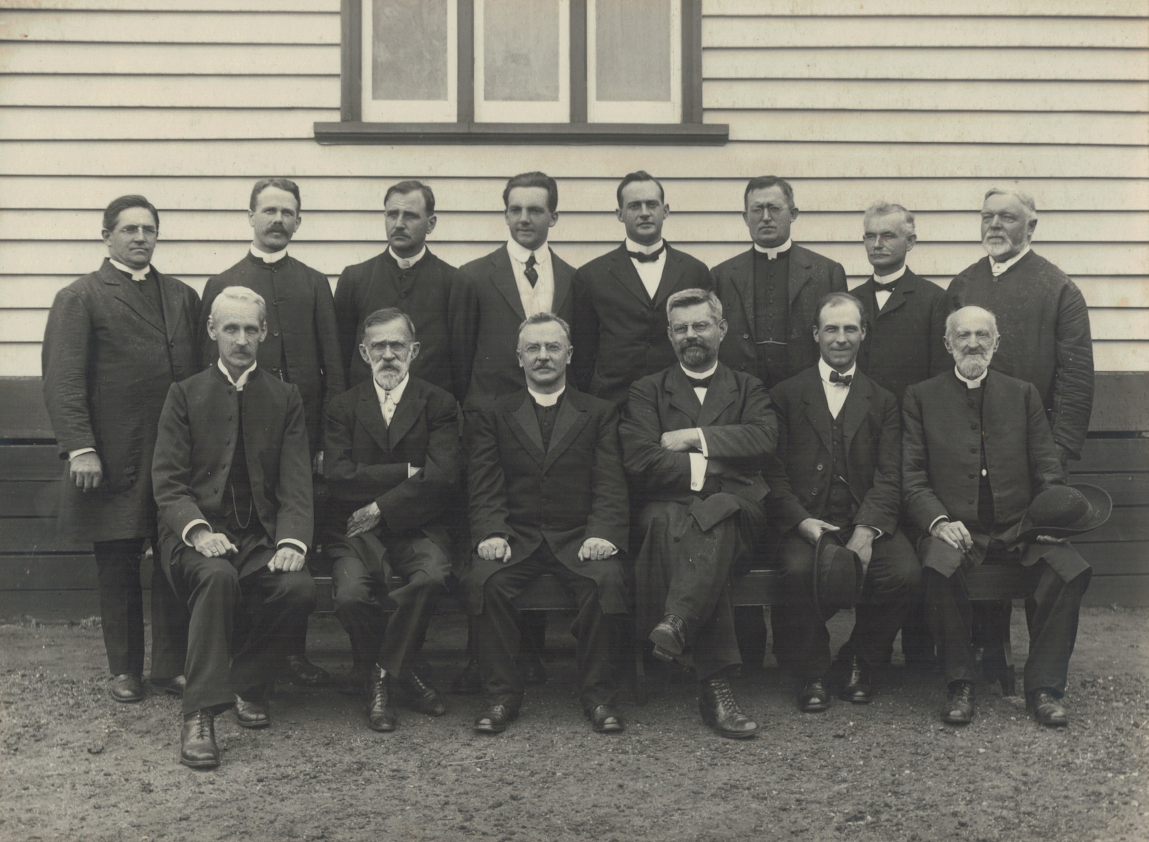 1.4.4.8 FRITSCH Walter Wilfred (Simpfendorfer) Published References (1.4.4.8 FRITSCH) Descendants (1.4.4.8 FRITSCH) St. John’s Lutheran Church, Murtoa (Vic.), (E. S. Schultz photo studio, Murtoa); Pastor W. W. Fritsch standing, back, 5th from left [Tess Hausler (Schache)].