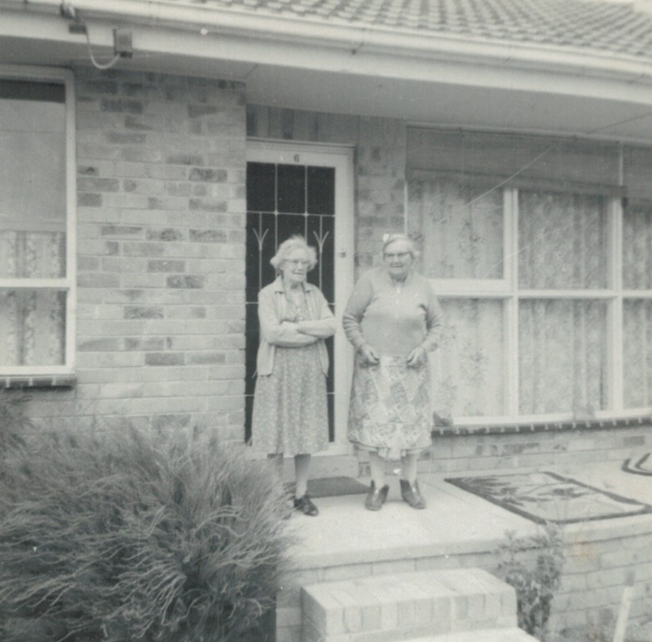 Selma Schache with her aunt Susan Reinecke (Schache), Maln Street, Kew, 1951.