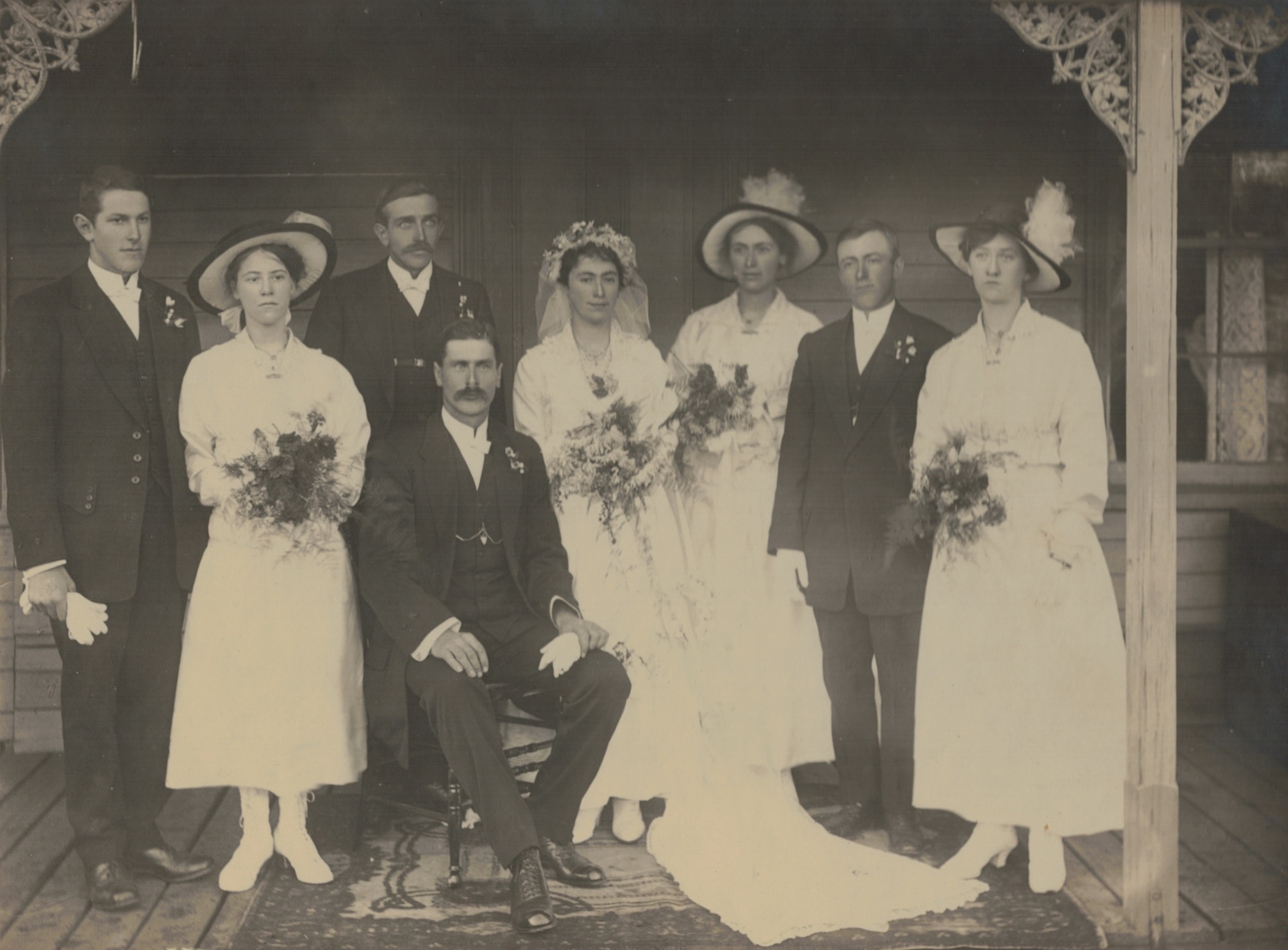 Ossie and Selma Schache (Adler)/ bridal photograph, “Sheoak Bank”, Coromby via Murtoa, Vic., (Drury’s Elite Studio, Horsham, Vic.) [Tess Hausler (Schache)]Ossie and Selma Schache (Adler): bridal party, “Sheoak Bank”, Coromby via Murtoa, Vic., (Drury’s Elite Studio, Horsham, Vic.) [Ben Schubert]Ossie and Selma Schache (Adler): wedding party, “Sheoak Bank”, Coromby via Murtoa, Vic. [Tess Hausler (Schache)].Ossie and Selma Schache: wedding reception, “Sheoak Bank”, Coromby via Murtoa, Vic., 1916.Ossie and Selma Schache (Adler): bridal photograph, (Richards & Co., Ballarat, Vic.), 1916 [Tess Hausler (Schache)].Ossie and Selma Schache (Adler): bridal photograph, (Richards & Co., Ballarat, Vic.), 1916 [Tess Hausler (Schache)].