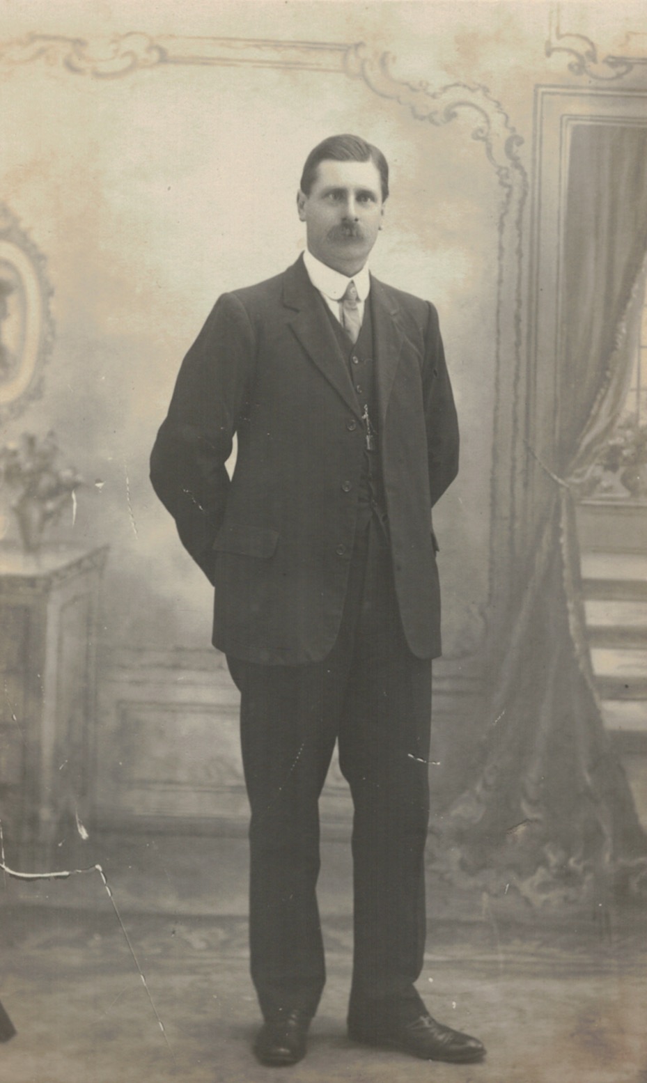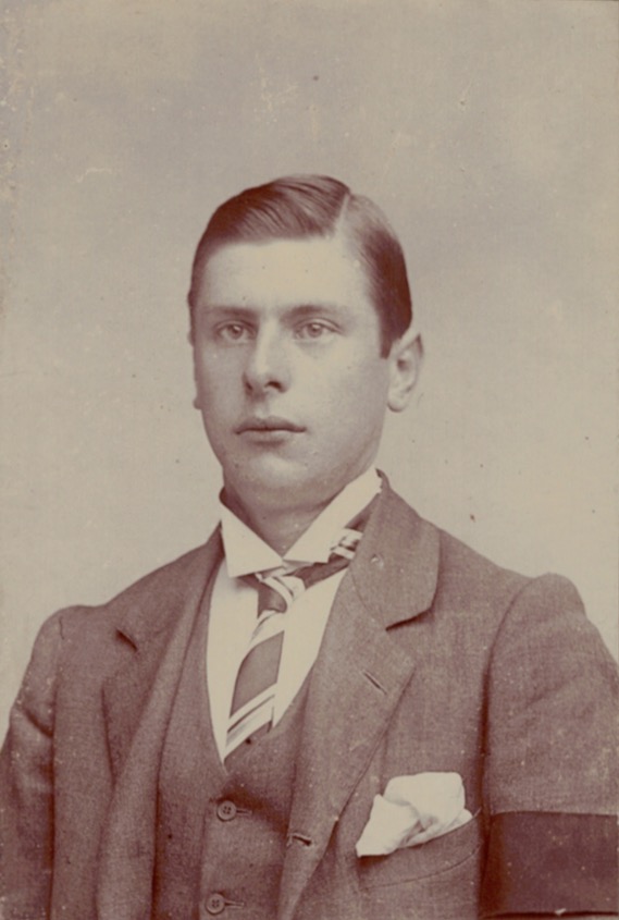 Ossie Schache wearing a mourning band, (Chuck Photo, Ballarat, Vic.) [photograph album owned by Minnie Schubert (Adler)].