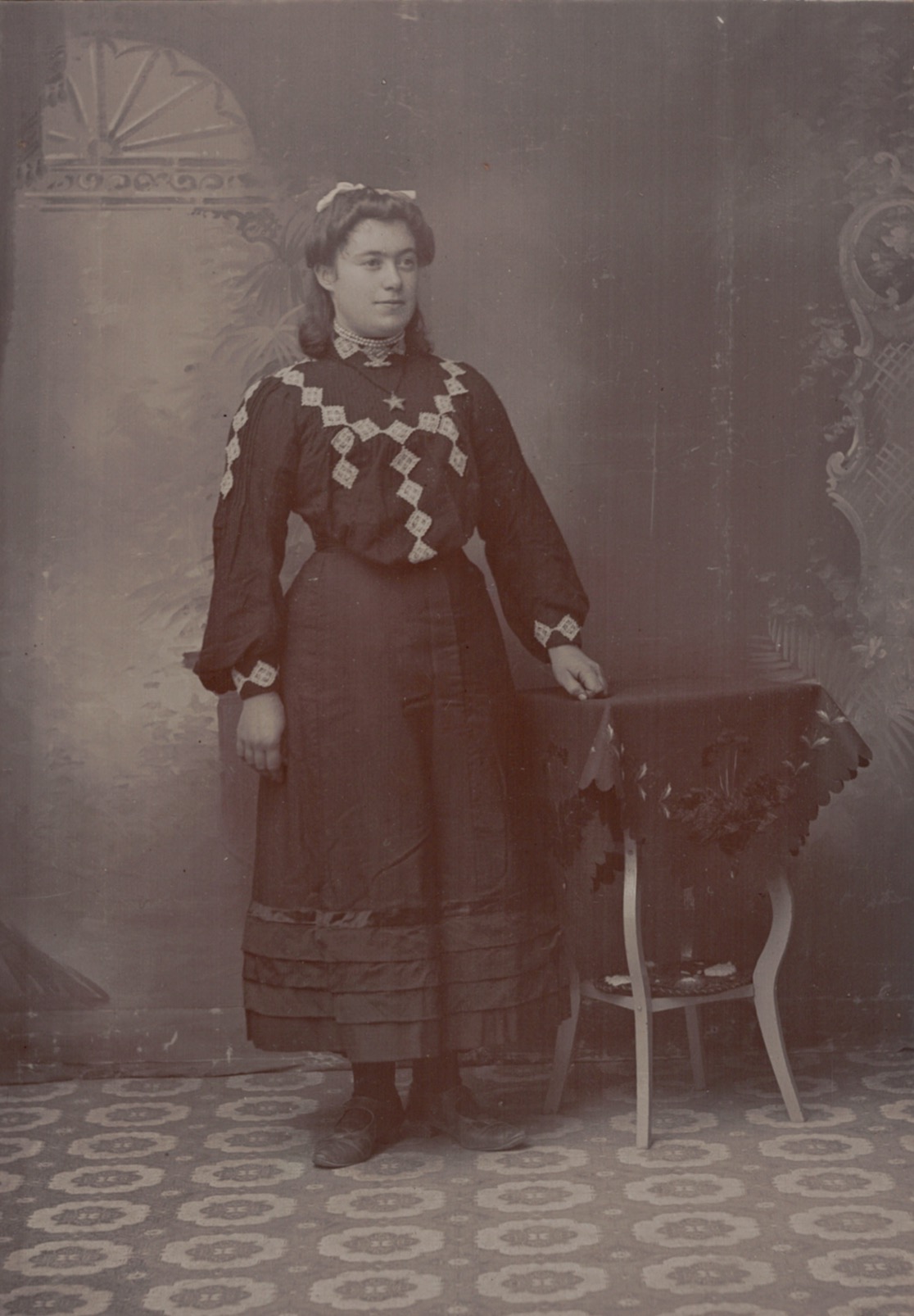 Selma Adler (later Schache), (E. S. Schultz, Murtoa) [photograph album owned by Minnie Schubert (Adler)].Selma Adler (later Schache), 1902, (E. S. Schultz, Murtoa, Vic.) [Lothar Schubert].