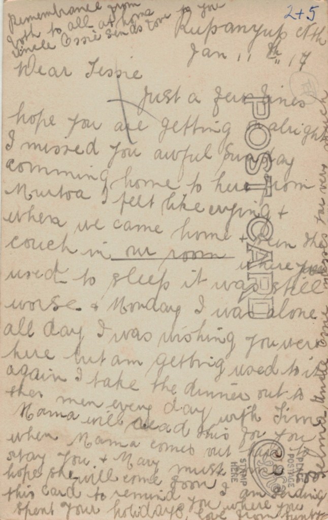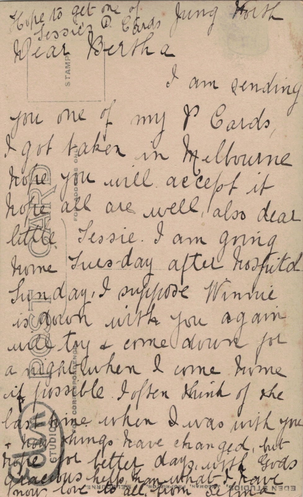 Reverse of the photograph above; letter to Tess Schache (later Hausler).