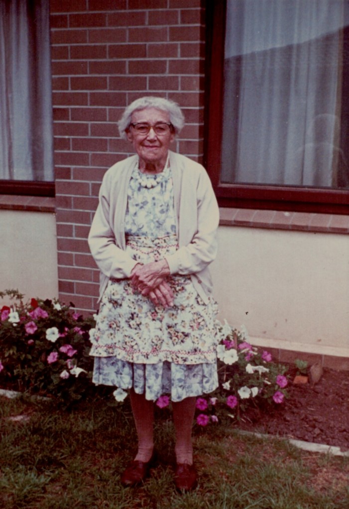 Selma Schache (Adler) [Winnie Schubert (Adler)].Selma Schache (Adler) with a Bible birthday cake presented by the St. Paul’s Lutheran Guild, Ararat, Vic., on her 80th birthday, 30 September 1966.Selma Schache (Adler), Ararat, Vic. [TessHausler (Schache)].Selma Schache (Adler), Gorrinn House, Ararat, Vic. [Irma Russell (Schache)].Selma Schache (Adler) with Glenda Snibson (later Schubert), Gorrinn House, Ararat, Vic., early 1970s [JAS].90th birthday of Selma Schache (Adler), Ararat, Vic., 2 October 1976: L-R, Winnie Schubert (Adler), John Schubert and Selma.