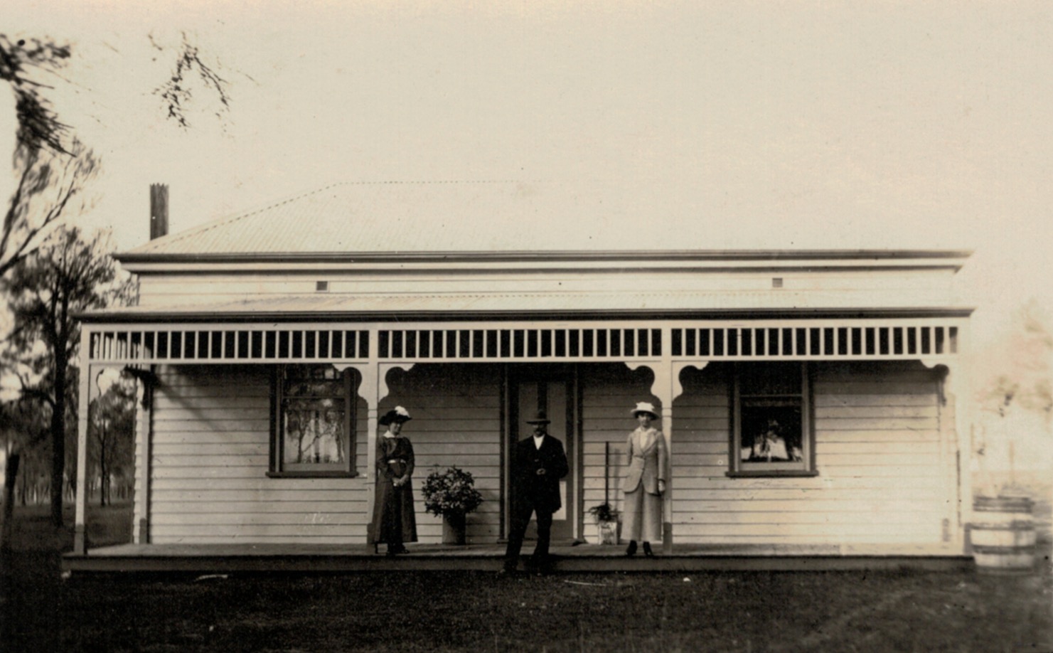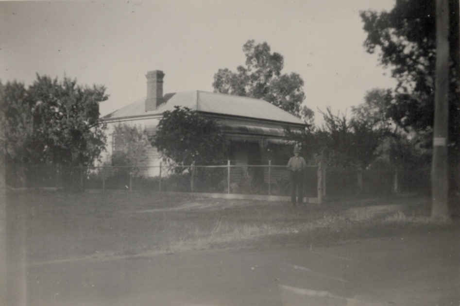 Home of Ossie and Selma Schache (Adler), “Lakeside”, Murtoa, Vic., c. 1920s.Irma Schache (later Russell) with Punch, Murtoa. Vic.Ossie Schache with Irma (later Russell), “Lakeside”, Murtoa, Vic., 1920s [Tess Hausler (Schache)].