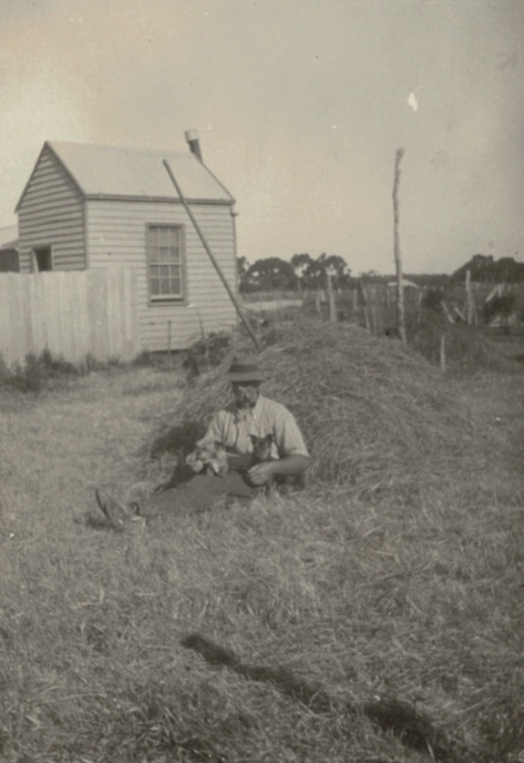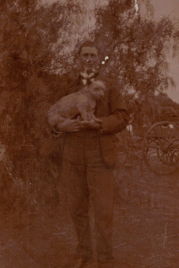 Ossie Schache and dog, “Lakeside”. Murtoa, Vic.