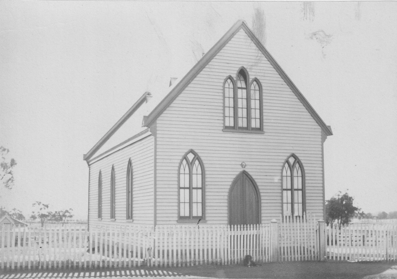 The second St. John’s Lutheran Church, Murtoa, when newly-built; August and Friederike Schache (Degenhardt) were the first couple married in this building in 1877 (R. Shapland, Photographer, Richmond, Vic.).