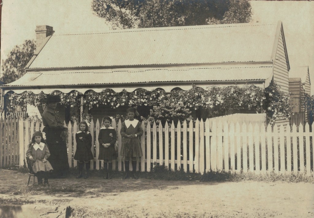 Friederike Schache (Degenhardt) outside her home, 17 Duncan Street Murtoa, c. 1920, with Schache grand-daughters, L-R, Edna (later Hunt/Hester), Mary (later Schubert), Tess (later Hausler) and Elvie (later Tilley).Schache group: L-R, Ossie, Bertha (Schache), unknown, Selma (Adler) and August.Family group: L-R, Mary Schache (later Schubert), August Schache, Essie Bielke (Adler), Fred Schache and Bertha Schache, home of Fred and Bertha, Arnold Street, Warracknabeal, Vic., c. 1938.Family group: L-R, Mary Schache (later Schubert), August Schache, (unknown), Fred Schache and Bertha Schache, home of Fred and Bertha, Arnold Street, Warracknabeal, Vic.,c. 1938.