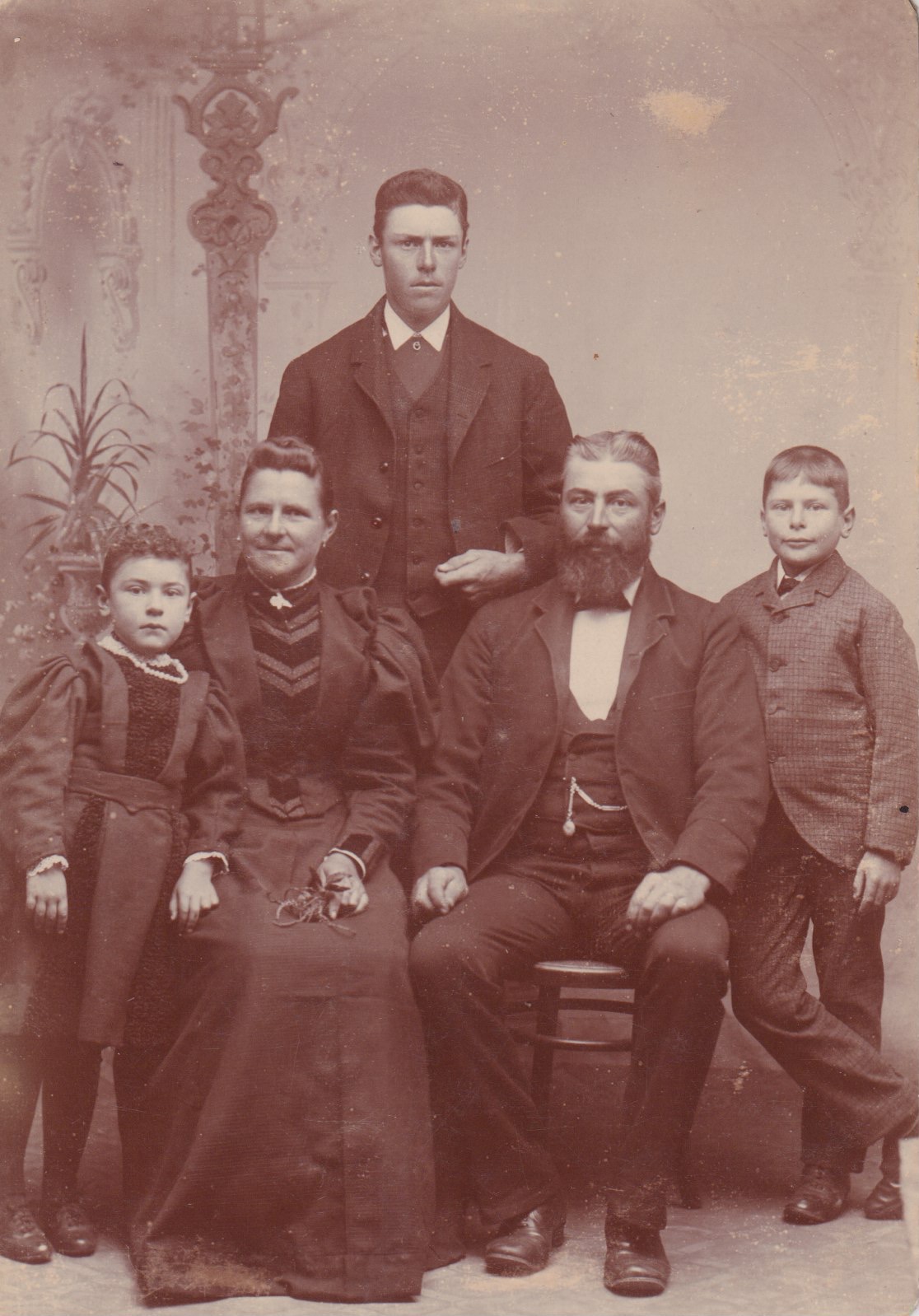 August and Friederike Schache (Degenhardt) and family, Bertha, Fred (rear) and Ossie.Auguste Degenhardt (Schwanecke) and family, Murtoa, Vic.: August Schache standing rear and Friederike Schache (Degenhardt) rear right.Auguste Degenhardt (Schwanecke) and grandchildren, Murtoa, Vic.: Bertha Schache (later Schache) and Ossie Schache rear right.