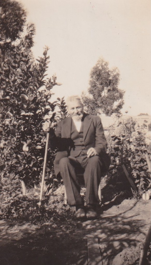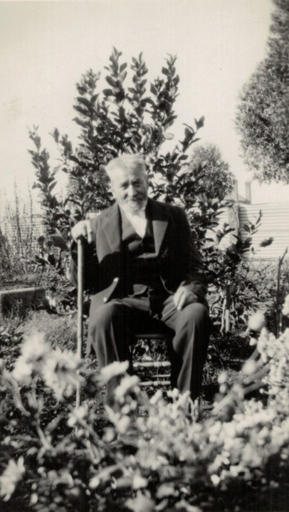 August Schache, April 1938, aged 84 years and four months, probably taken at the home of Fred and Bertha Schache (Adler), Arnold Street, Warracknabeal, Vic.