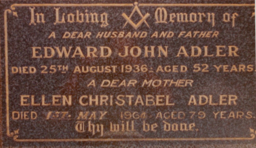 1.6.2 ADLER Edward John (WHITE) 1.6.2.1 ADLER Gordon Edward (Millynn)1.6.2.2 ADLER Edna Lillian (VINECOMBE) Published References (1.6.2 ADLER) Headstone for Ron Hausler, West Wyalong Cemetery, NSW [Gordon Adler].