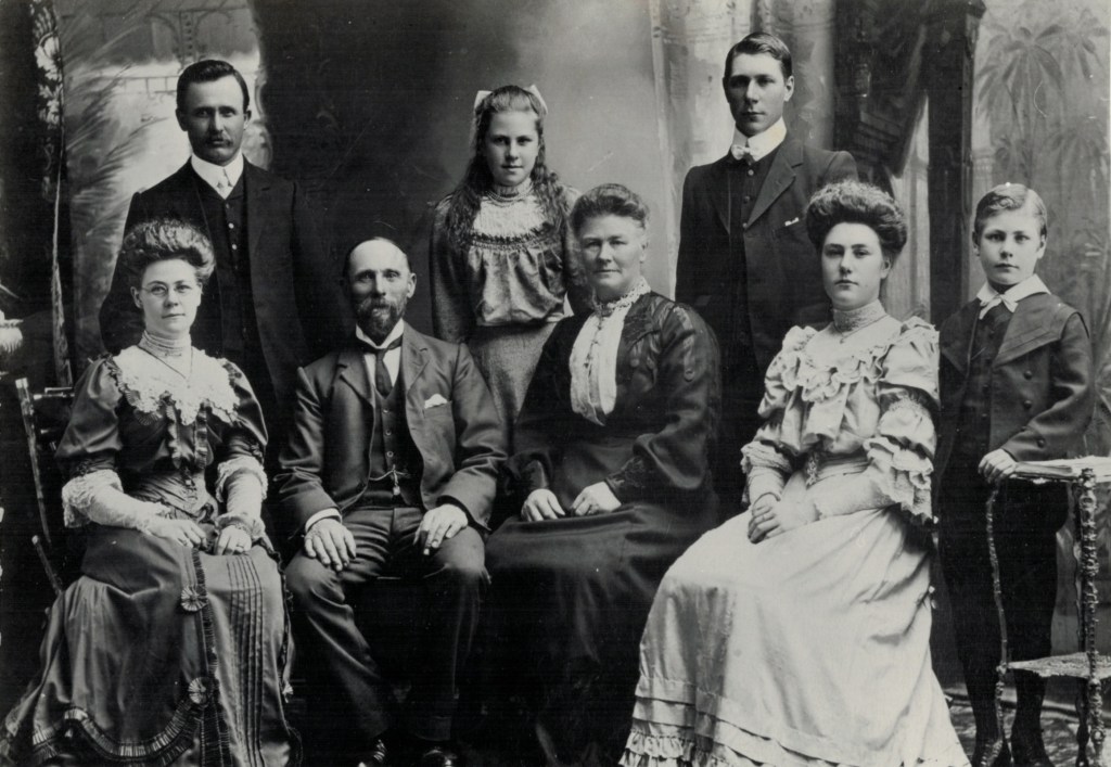 Ned and Louise Adler (Hering), (Stewart and Co., 217 & 219 Bourke Street East,, Melbourne) [Tess Hausler (Schache)]Farm of Ned and Louise Adler (Hering), Ashens via Murtoa, Vic. (Union Farm); L-R, Bertie, Louise, Ted, unknown; Ned sitting on underground tank [Bill Adler].Adler farm at Moolap, Geelong, Vic.; Ted Adler holding the horses [Gordon Adler].Ned and Louise Adler (Hering) and family, Geelong, c. 1906; L-R, Bertie Hausler (Adler), Ron Hausler, Ned, Val Adler(later Ruschen), Louise, Ted Adler, Olga (later Scott) and Paul (Adler) [Bill Adler].Adler farm “Pumula”, West Wyalong; photo taken from the bottom of the orchard [Gordon Adler].Ned and Louise Adler (Hering) [Ivy Hausler].