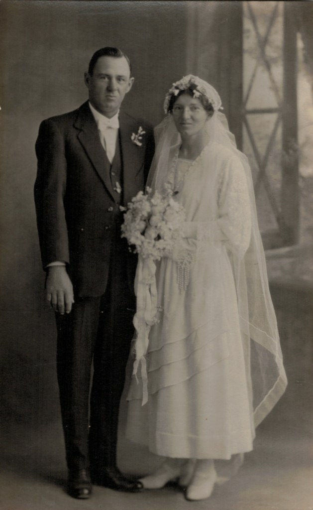 1.7.3 ADLER Conrad Otto (Groger) 1.7.3.1 ADLER Alfred James (Beyer) Con and Bertha Adler (Groger) bridal photograph F. A. Whitehead, Ipswich) [Tess Hausler (Schache). Con and Bertha Adler (Groger) [Allie Miller (Adler)].