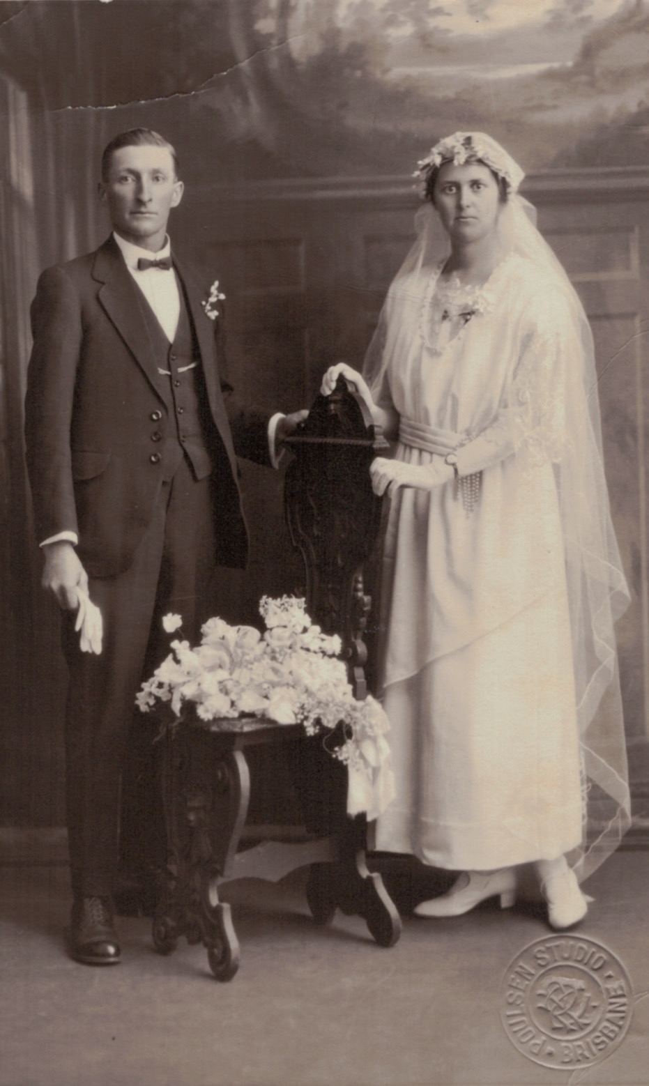 Ernie and Essie Bielke (Adler) bridal photo, 1925, (Poulsen Studio Brisbane, Qld.) [Dorothy Walters (Prentice)].