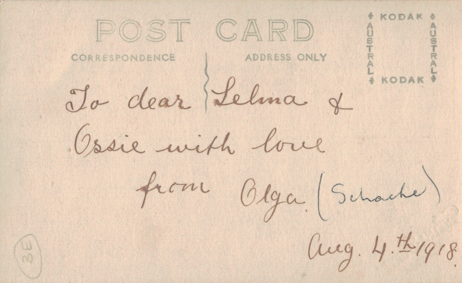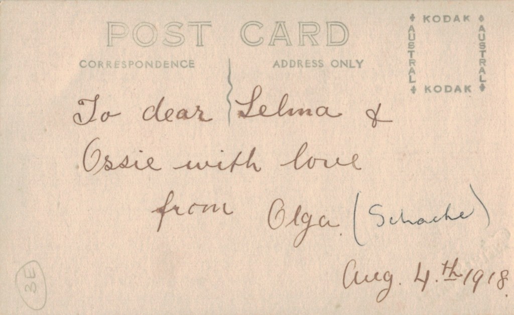 Olga Schache (later Wilhelm), 4 August 1918 (Thelma-Duryea, Adelaide) [Irma Russell (Schache)].