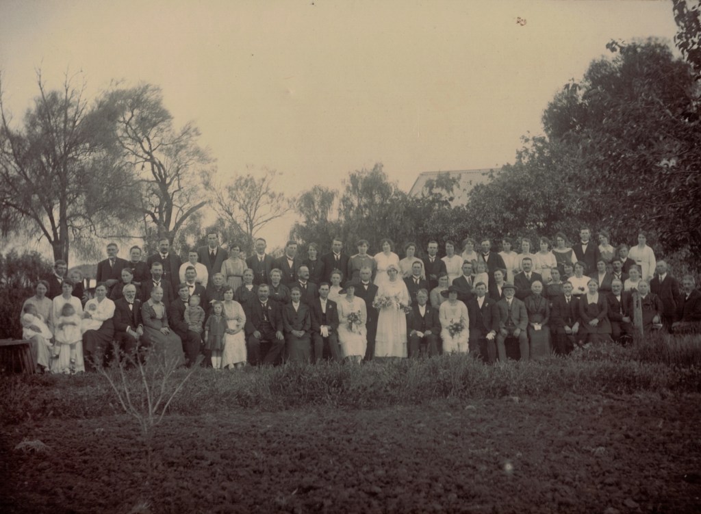 Dan and Olga Wilhelm (Schache), wedding reception, “Sandergrove”, Box Flat via Murtoa, Vic.