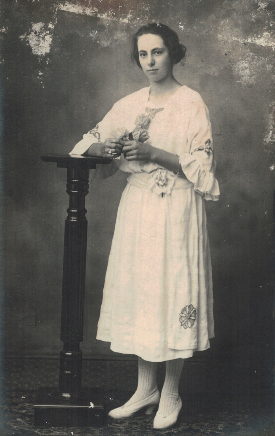 1.7.7.6 SCHACHE Emma Gertrude (FOGARTY/MAGUIRE) Press References (1.7.7.6 SCHACHE) Emmie Schache (later Fogarty/Maguire), (E. S. Schultz, Photo Studio, Murtoa)[Tess Hausler (Schache)]. Reverse of the photograph above.