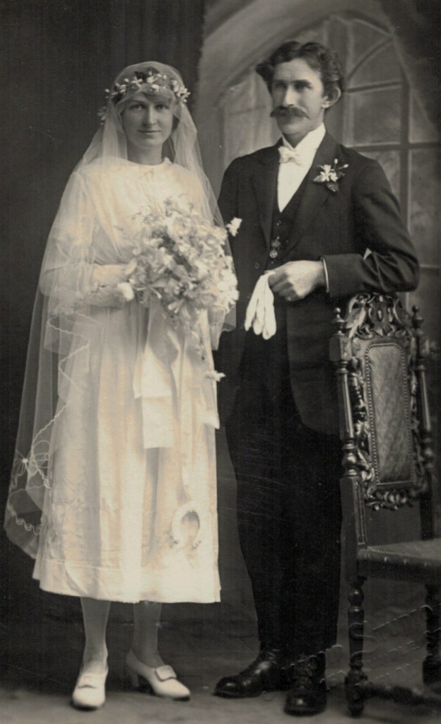 Alex and Sophie Liebelt (Boehm) bridal photograph, (Dimond Studio, 150 Rundle Street, Adelaide, SA), 1922 [Winnie Schubert (Adler)].