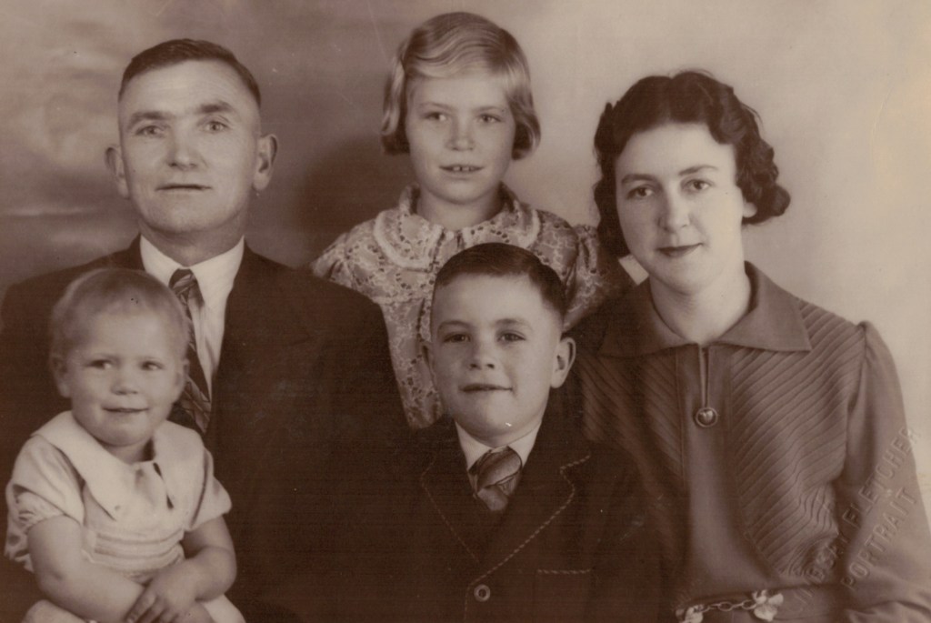 Alan and Gertie Smith (Schubert) and family 1940: Rhonda (later Nicholson/Walker) at rear, Val (later de Valle) and Laurie (Lindsay Fletcher North Bondi portrait) [Gertie Smith (Schubert)].
