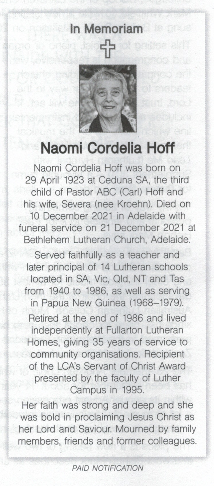 “Lutheran” (Adelaide, SA), April 1996, page 16.