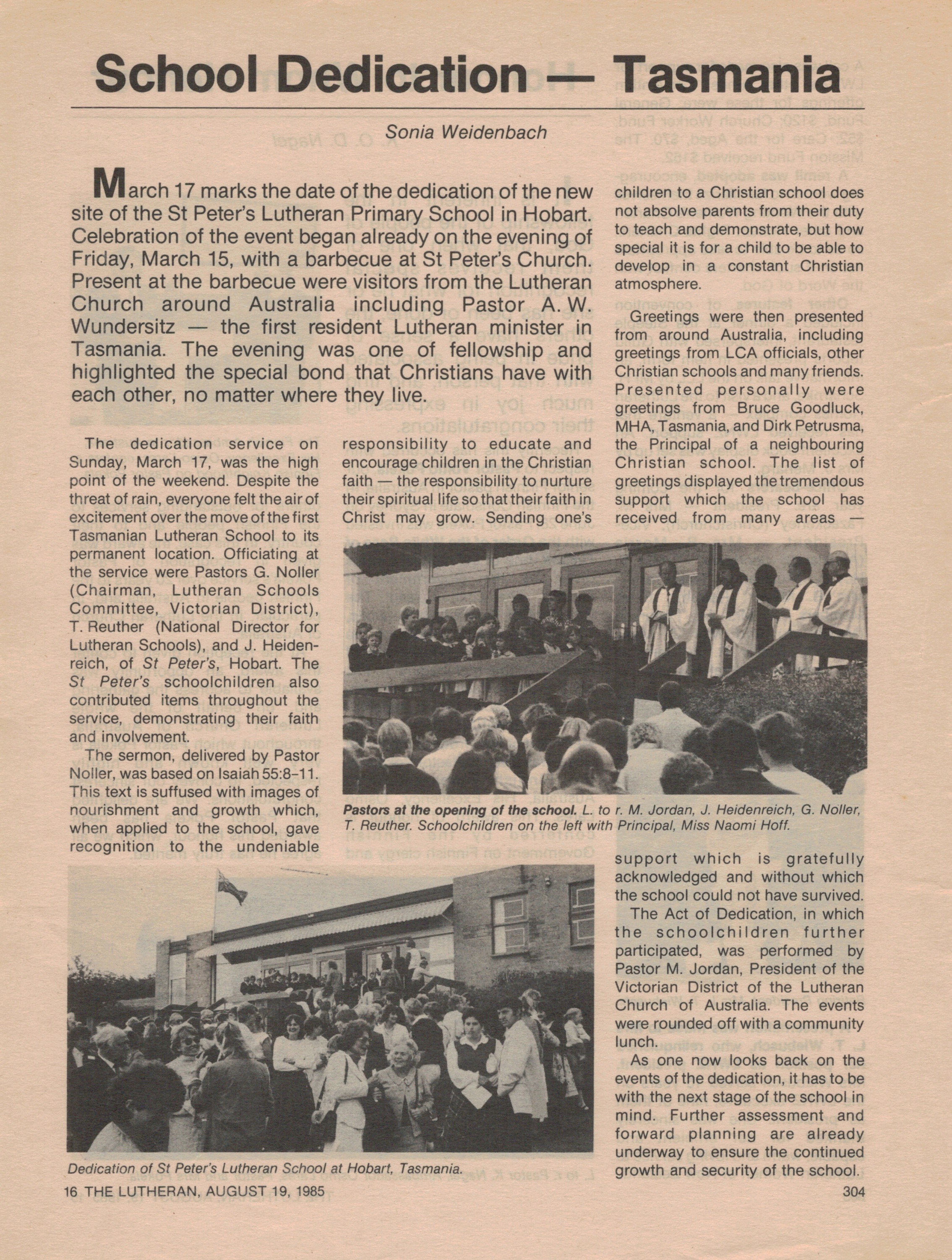 “Lutheran” (Adelaide, SA), 19 August 1985.