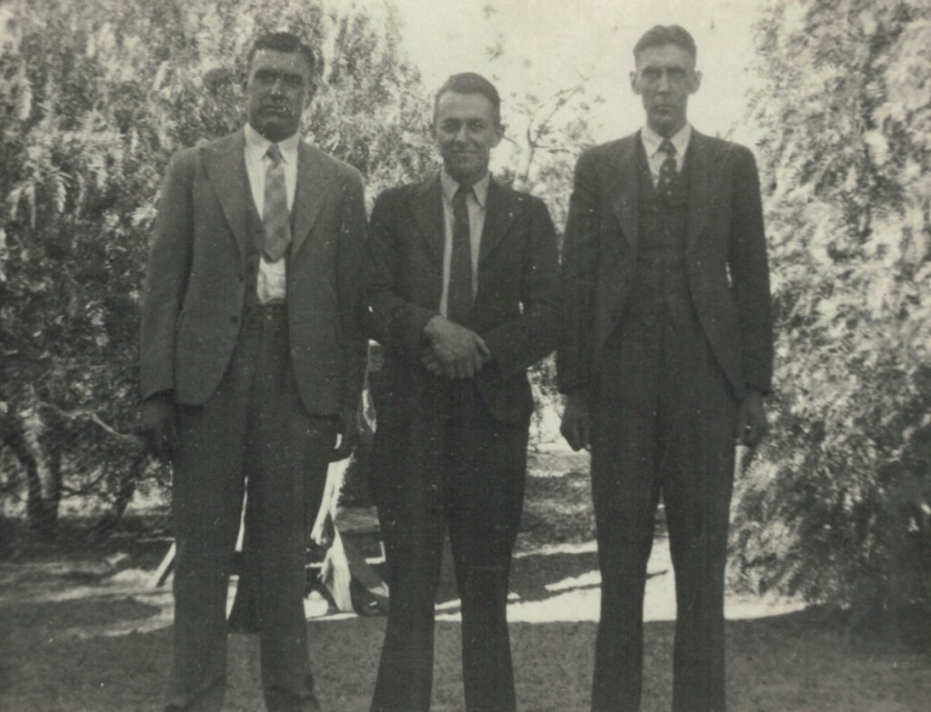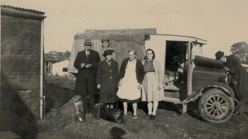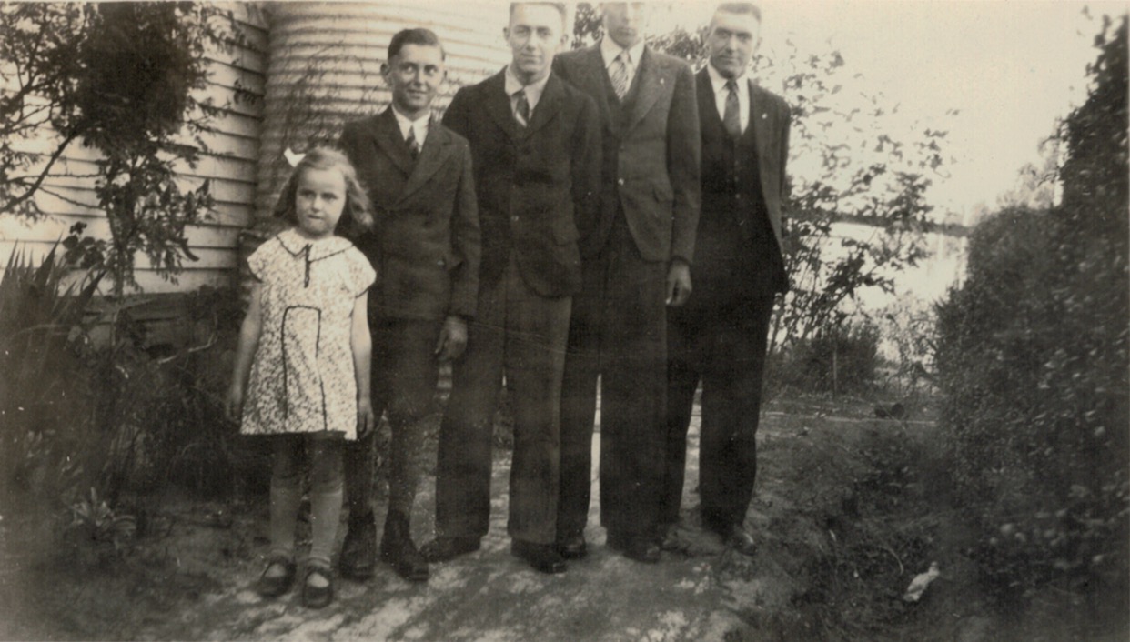 Len, Alf and Rupert Schubert, early 1940s.Walther and Winnie Schubert (Adler) and family, 1942: standing L-R, Ron, Alf, Walther, Len; seated L-R, Rupert, Winnie and Marie (H. A. Bonney, Camberwell, Vic.).Reverse of above.Home of Walther and Winnie Schubert (Adler), Colchester Road, Kilsyth, Vic., c. 1942-1950 [Winnie Schubert {Adler)].Schubert siblings: standing L-R, Len, Alf and Rupert; seated, Ron and Marie (later Miller); probably taken Kilsyth, Vic., late 1940s.Group at Schubert’s home Colchester Road, Kilsyth, Vic., 1949 (Doncaster synod)/ standing L-R, Ossie Schache, Rupert Schubert (rear), Selma Schache (Adler), Winnie Schubert (Adler) and Hazel Hateley (later Schubert), (unknown at truck engine) [Winnie Schubert (Adler)].Home of Walther and Winnie Schubert (Adler), (Vance’s farm), Newry, Vic., c. 1950-1955 [Irma Russell (Schache)].