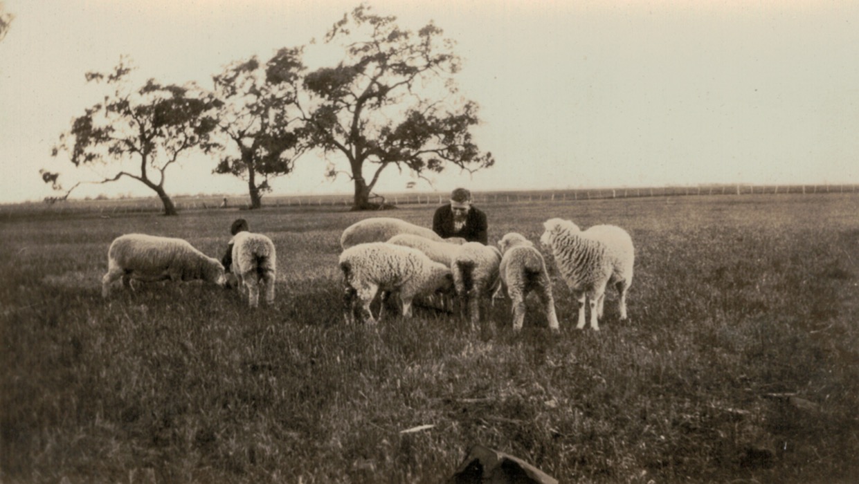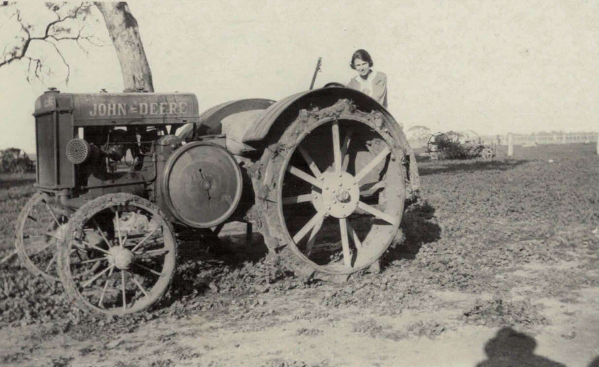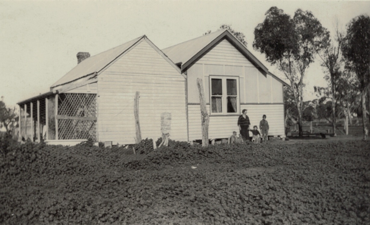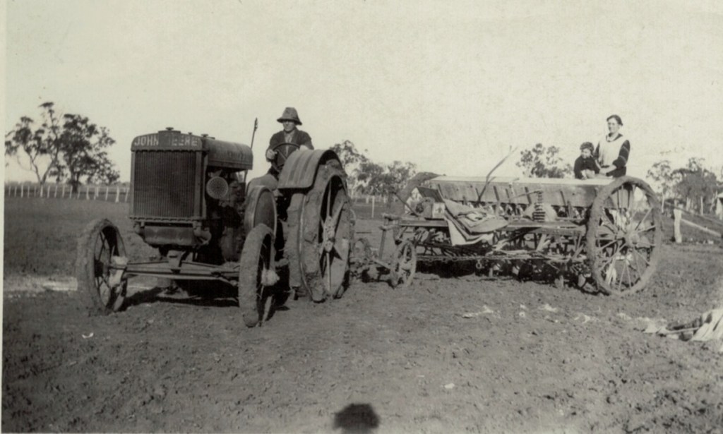 Walther Schubert on tractor with plough, Sheep Hills, Vic., c.1930s; tractor belonged to Eddie Hausler, which is possibly him on the plough[Tess Hausler (Schache)].Walther Schubert on tractor, with Winnie and Ron on the plough, Sheep Hills, Vic., c.1930s [Tess Hausler (Schache)].Schubert’s farm, Sheep Hills, Vic., c.1930s (Mary Schache, later Schubert) [Tess Hausler (Schache)].