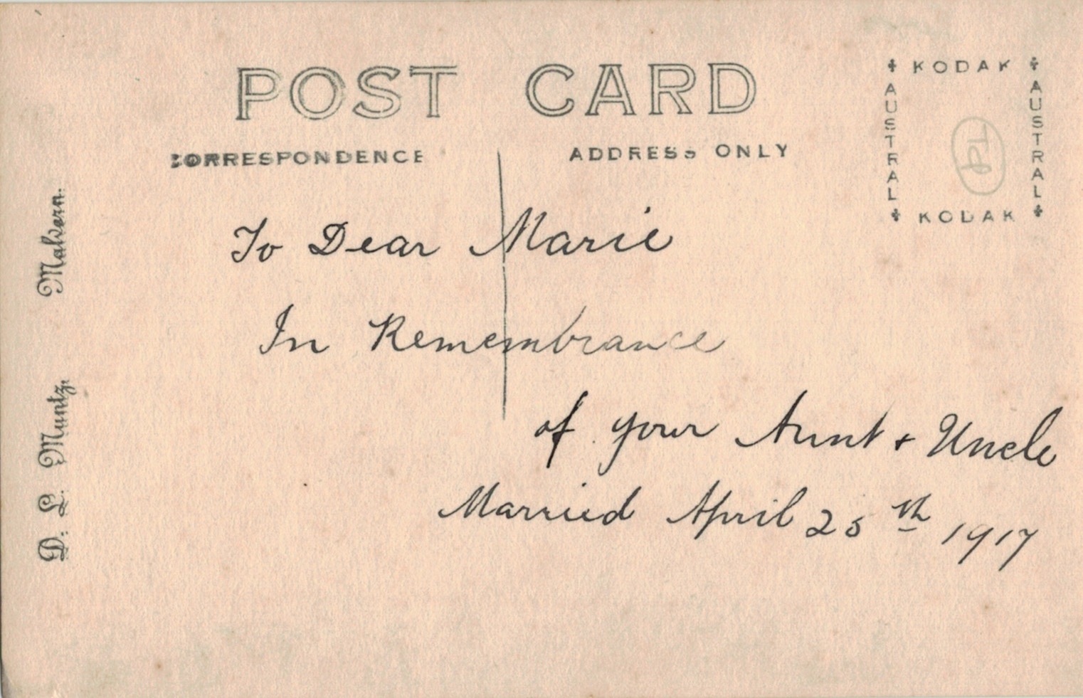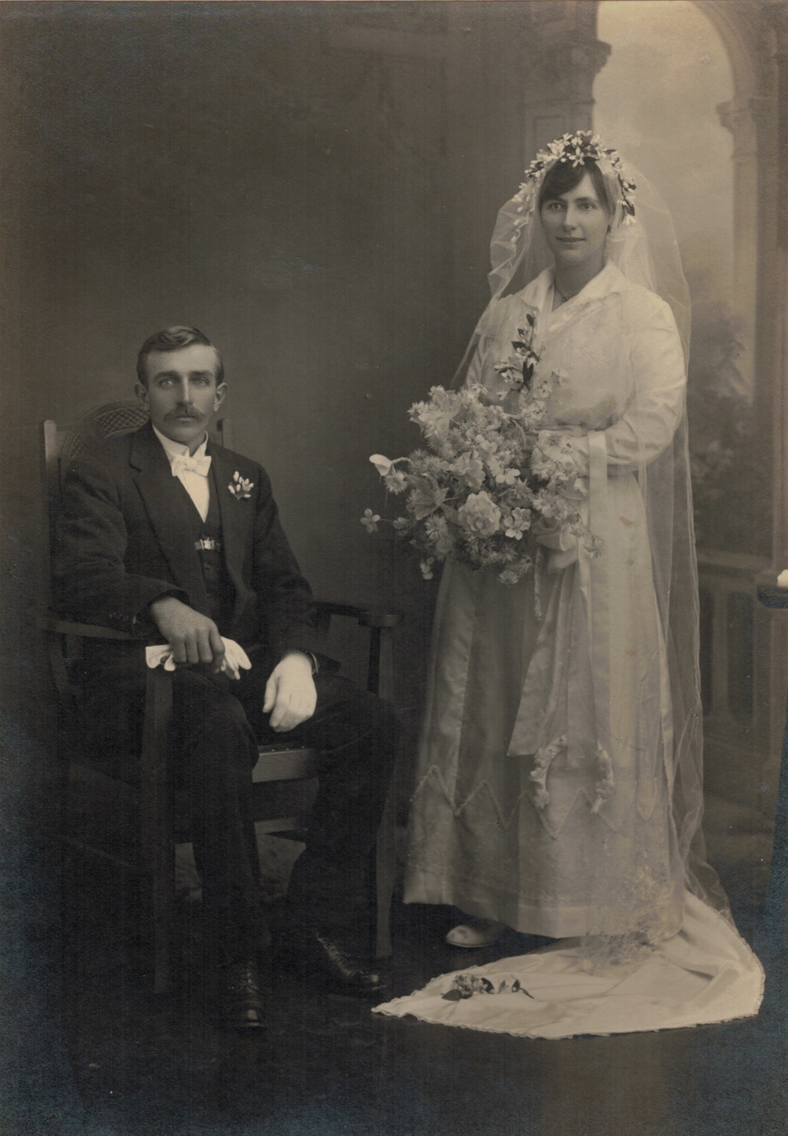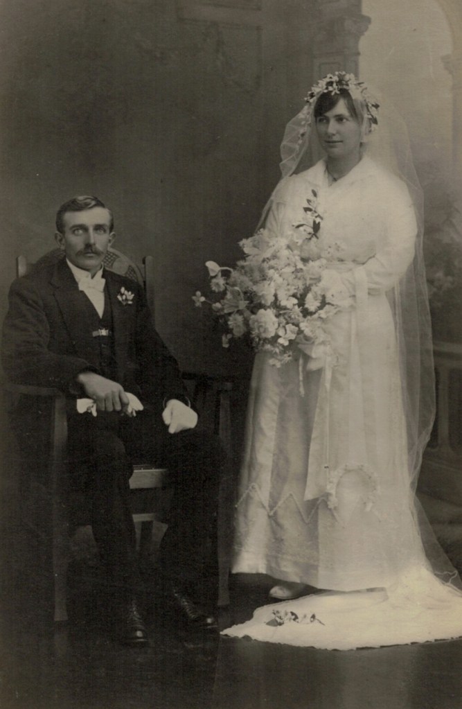 Walther and Winnie Schubert (Adler), wedding, 1917 (D. Livingstone Muntz, Malvern, Vic.) [David Schubert].
