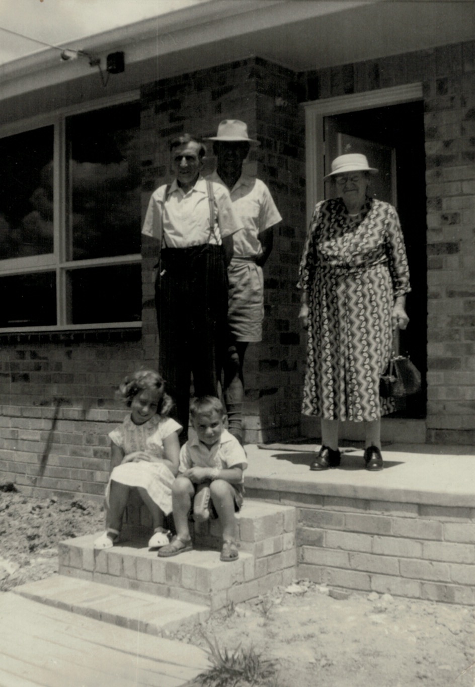 Walther Schubert (rear) with L-R, Len Schubert, Leonor Schubert (later Stiggants), Dorothy Miller (later Gardam) and George Mller, Newry, Vic., 1954 [Winnie Schubert (Adler)]Winnie Schubert (Adler), with Miller grandchild, Newry, Vic, c. 1955.Walther and Winnie Schubert (Adler) with grandchildren Dorothy (later Gardam), Robert and Andrew Miller c. 1957 [Dorothy Gardam].Walther and Winnie Schubert (Adler) outside their newly-built home, 6 Shield Court, Kilsyth, with son Len (rear) and children Leonor (later Stiggants) and Kevin, c. 1960-1961.Schubert family at the home of Marie Miller (Schubert), Tinamba, Vic., taken 16 October 1962, the day of Graeme Schubert’s funeral: standing rear L-R, Rupert Schubert, Ron Schubert, Len Schubert, Joyce Schubert (Schroeter), Alf Schubert; standing front L-R, Marie Miller with Dorothy Miller, Phyllis Schubert (Schultz) and Winnie Schubert (Adler).Winnie Schubert (Adler), right, outside her home, 6 Shield Court, Kilsyth, Vic., with sister Selma Schache, mid 1960s.