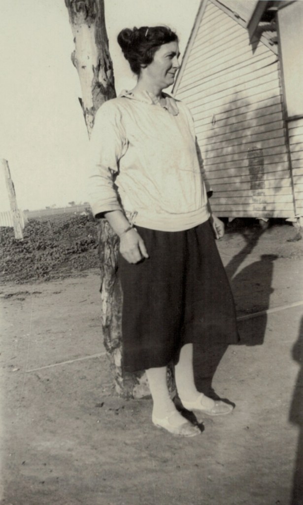 Winnie Schubert (Adler) at the farm, Sheep Hills, Vic., c.1930s [Tess Hausler (Schache)].