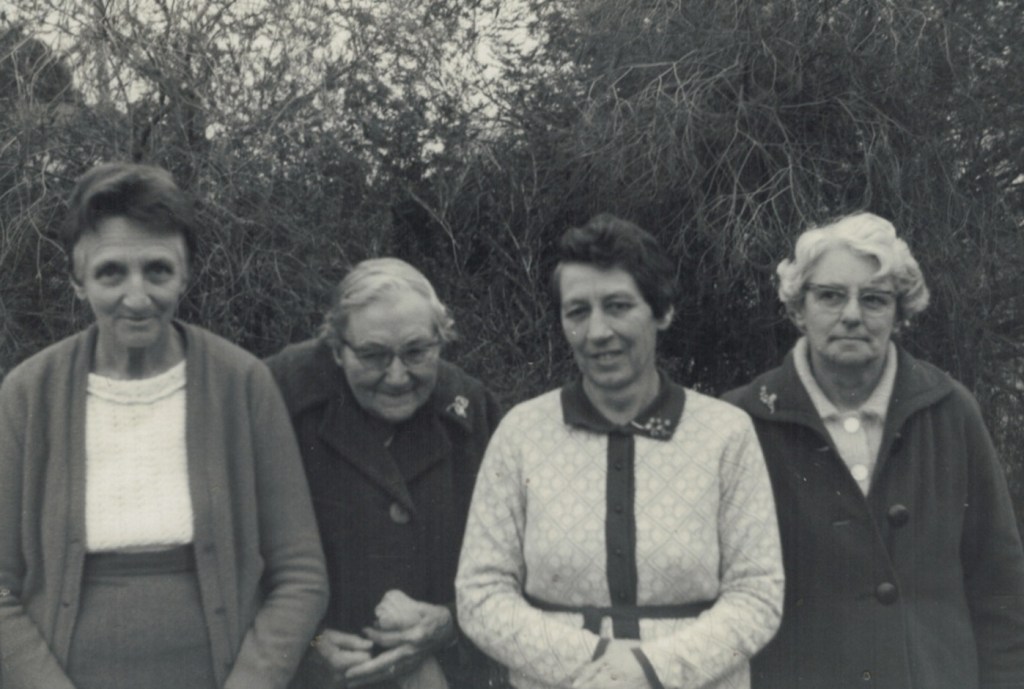 Warracknabeal, Vic., 1970, home of Sig and June Schubert (Bawden): L-R, Elma Schubert, Winnie Schubert (Adler), Margaret Schubert and Tess Schache (later Hausler) [JAS].