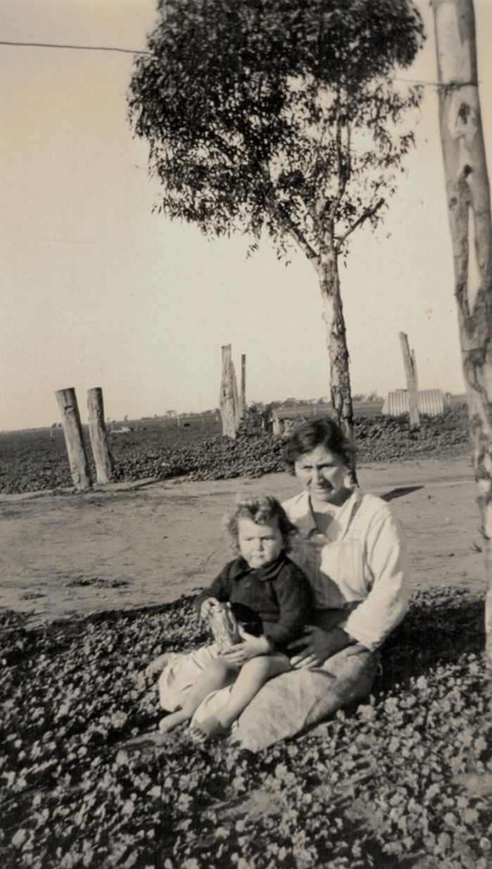 Winnie Schubert (Adler) with Ron, at the farm, Sheep Hills, Vic., 1930s Tess Hausler (Schache)].