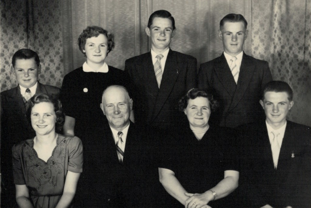 1.9.8 ADLER Frank (Blanchard) 1.9.8.1 ADLER Dorcas Wilma (SCHNEIDER)1.9.8.2 ADLER Lorna Olive (PETERING)1.9.8.3 ADLER Noel Ernestย (Schultz)1.9.8.4 ADLER Owen Paul (Smith)1.9.8.5 ADLER Kevin Norman (Driller)1.9.8.6 ADLER Peter John Published References (1.9.8.Adler) Documents and Memorabilia (1.9.8 Adler) Frank and Ena Adler (Blanchard) and family, 1958.