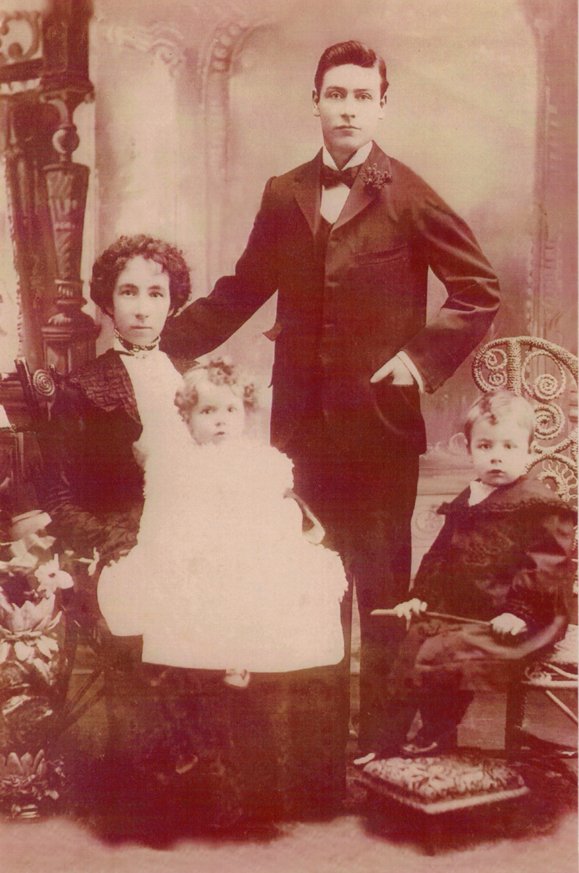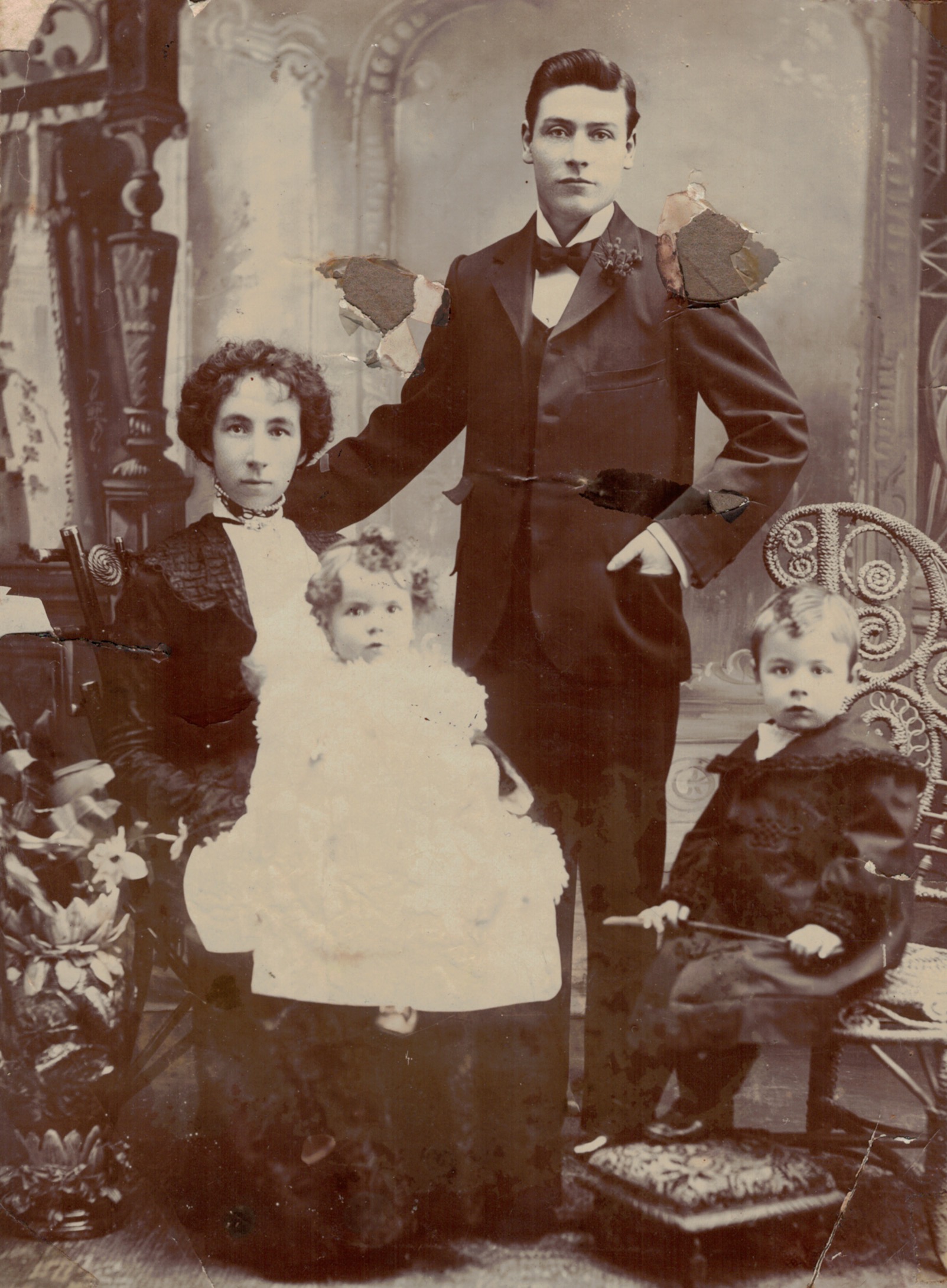 Tom and Susan Corrie (Girvan), with children Doris (later Fearn-Wannon) and Ray [Geoff Harwood/Kim Harwood]..As above, before restoration.