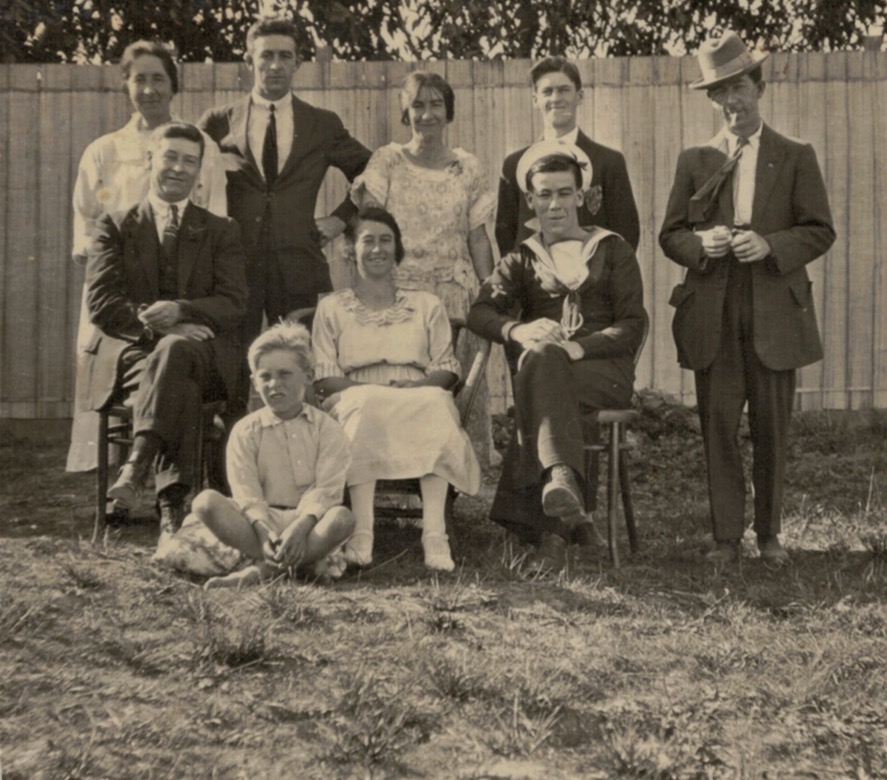Corrie and Marney family group c. 1928: Walter and Annie Marney (Sherman nee Cowderoy) back left; Rose Corrie (Marney) and Joan Corrie (later Snibson) front left; Tom Corrie lying down centre; Ray Corrie and Susan Corrie (Girvan) front right.Corrie family group; L-R, Arthur Fearn-Wannon, Rose Corrie (Marney), Joan Corrie (later Snibson), Doris Fearn-Wannon (Corrie), Ray Corrie and Susan Corrie (Girvan).Corrie and Marney family group: standing L-R, Susan Corrie (Girvan), Walter Marney, Alice Bowman (Cowderoy/Sherman), Bill Bowman; front L-R, Rose Corrie (Marney), Joan Corrie (later Snibson), Ray Corrie, Austin Marney and Violet Marney (Moss).