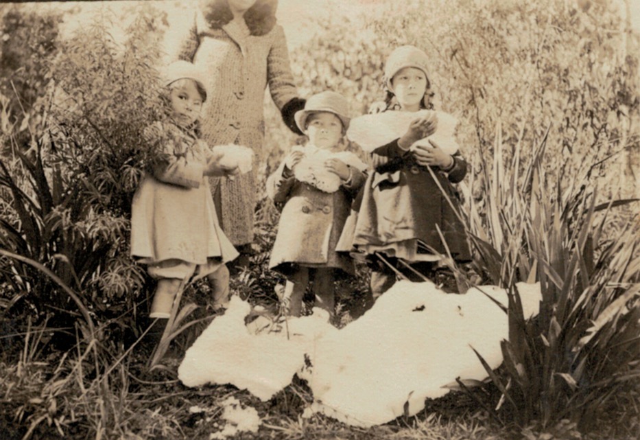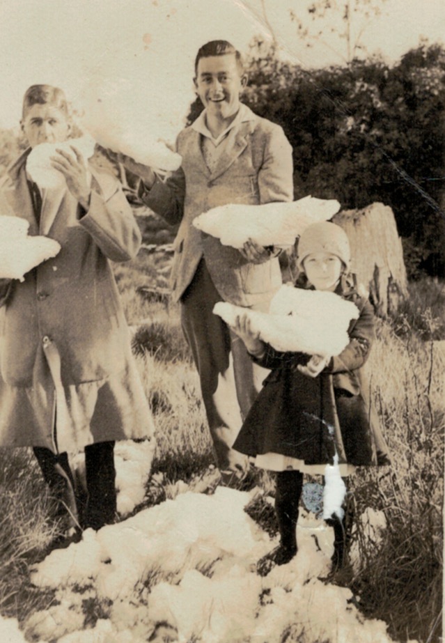 Holding snow c. 1932; L-R, Arthur Fearn-Wannon, Ray Corrie and Joan Corrie (later Snibson).