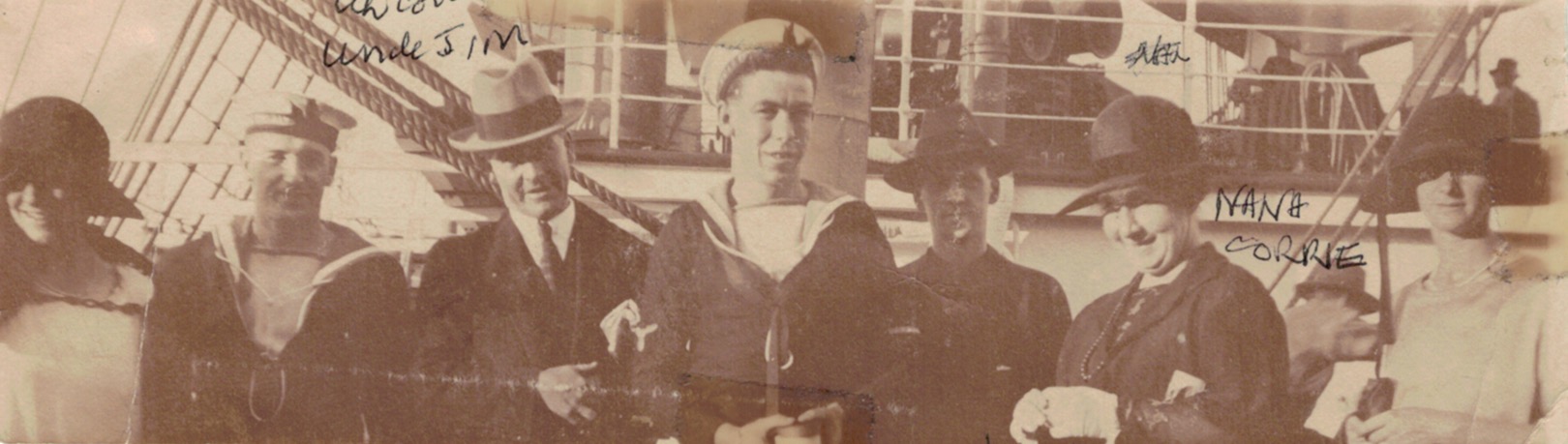 Susan Corrie (Girvan) at rear with Rose Corrie (Marney), Ringwood, Vic..Corrie and Girvan group: standing L-R, (unknown), Susan Corrie, Tom Corrie, Jim Girvan; seated L-R, (unknown), Jim Girvan (jun.), Rose Corrie (Marney) and Stella Girvan (Hancey).Corrie and Marney family group: standing L-R, Doris Fearn-Wannon (Corrie), Arthur Fearn-Wannon, Ray Corrie, Bill Bowman; seated L-R, Rose Corrie (Marney), Alice Bowman (Cowderoy/Sherman) and Susan Corrie (Girvan).Corrie and Girvan family group on board ship: L-R, (unknown), (unknown), Jim Girvan, Bill Corrie, (unknown), Susan Corrie (Girvan), Rose Corrie (Marney).Tom and Susan Corrie (Girvan).