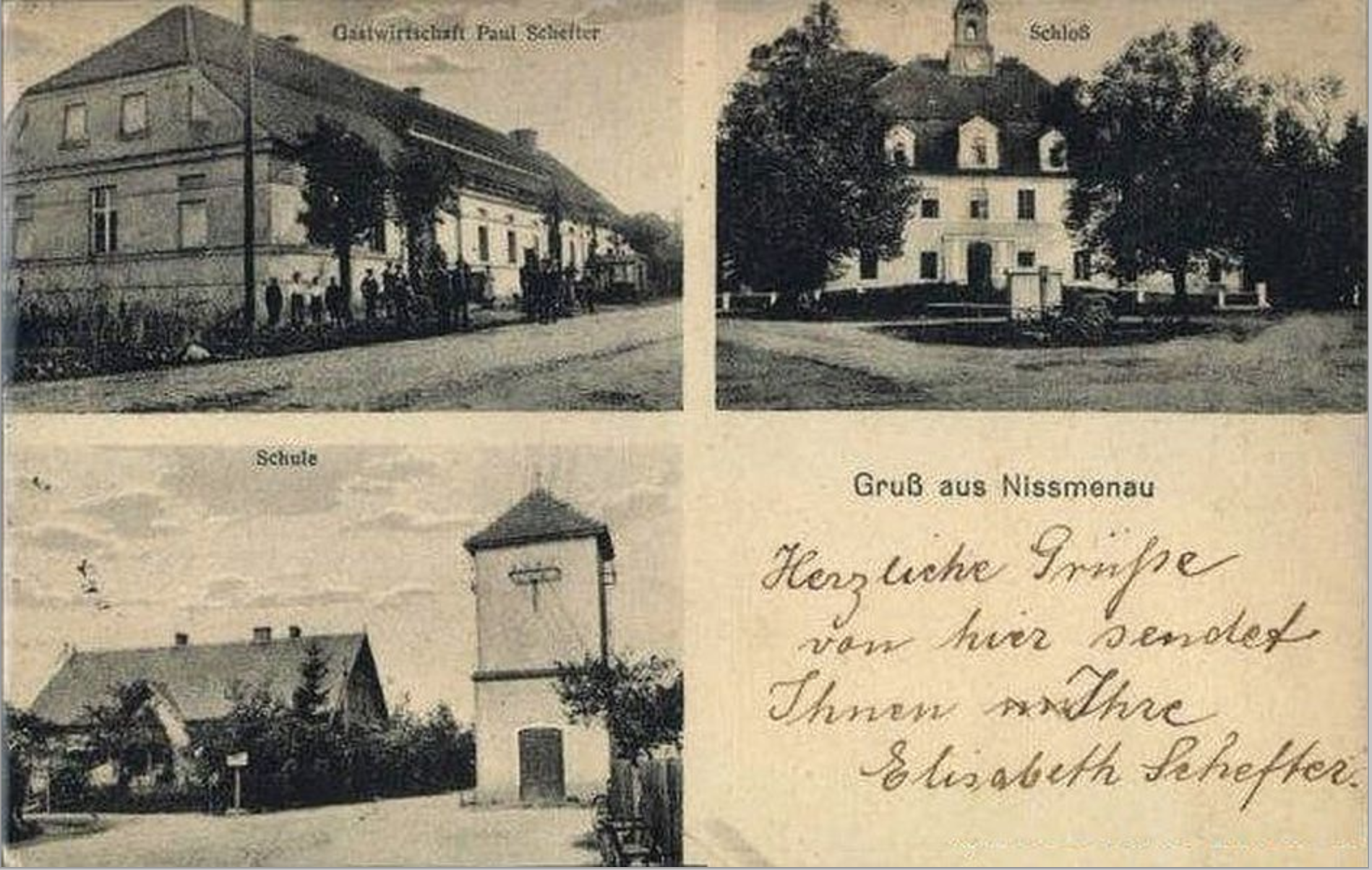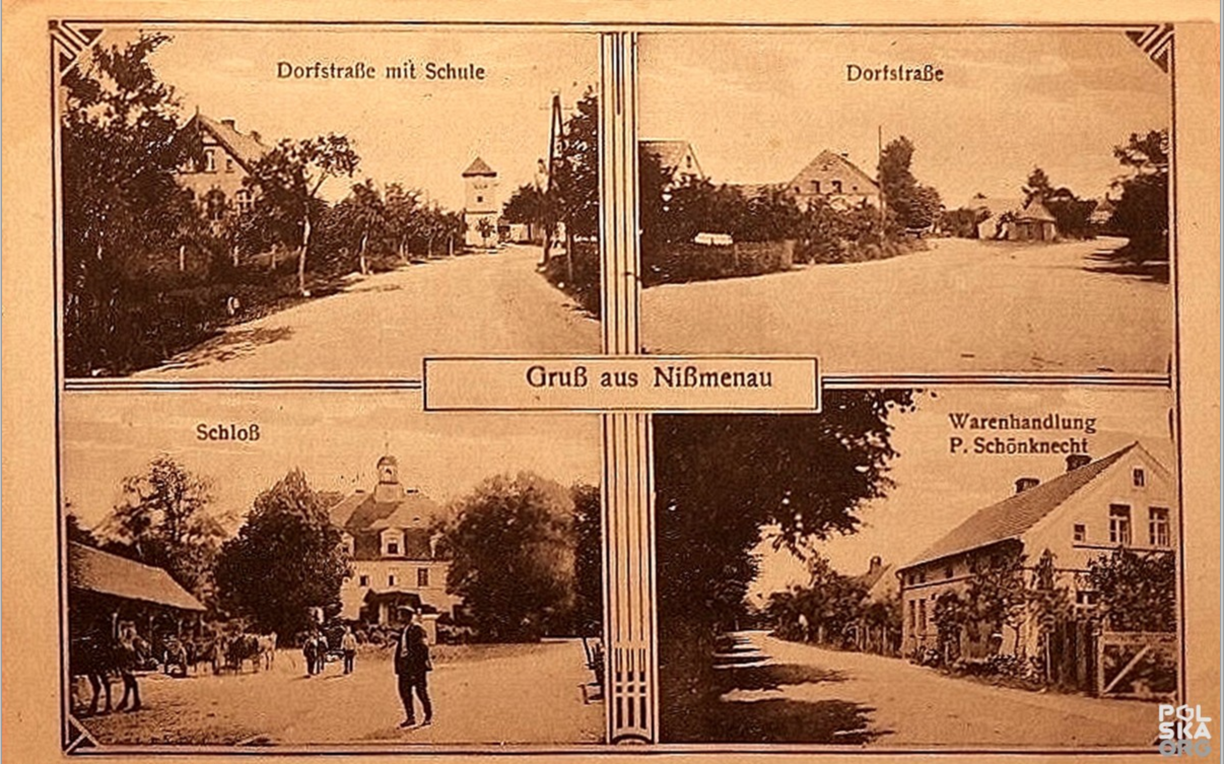A 20th century postcard of Niรmenau, Prussia, now Wลostรณw, Poland, where August Fiedler was born [Internet].As above.
