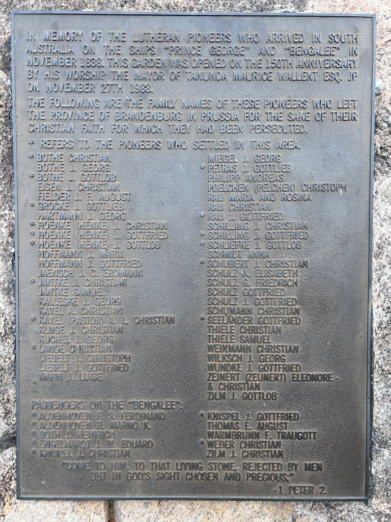 Pioneer plaque, Murray Street, Tanunda, SA, 2025; note the misspelling of Fiedler’s surname [JAS].