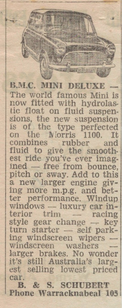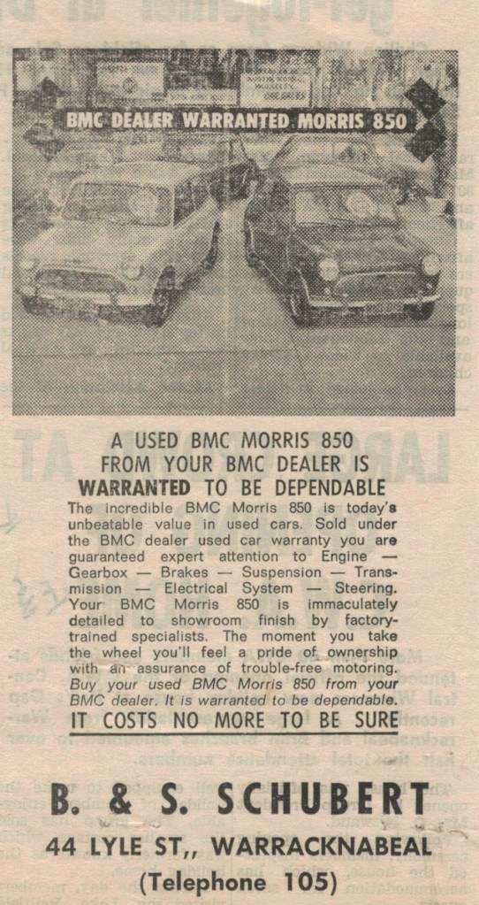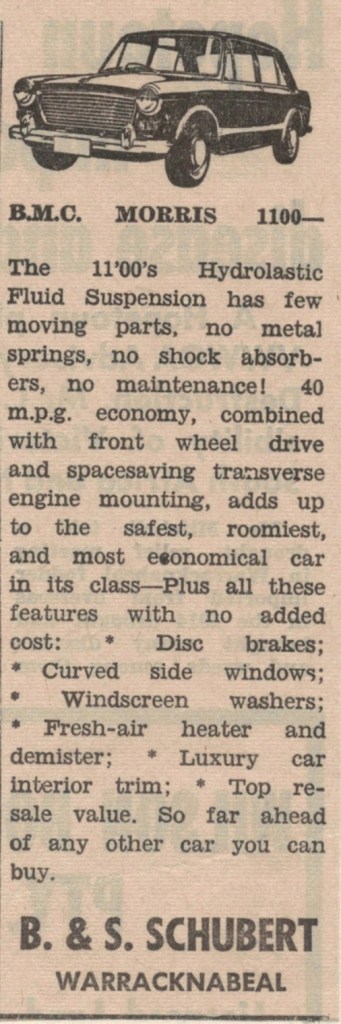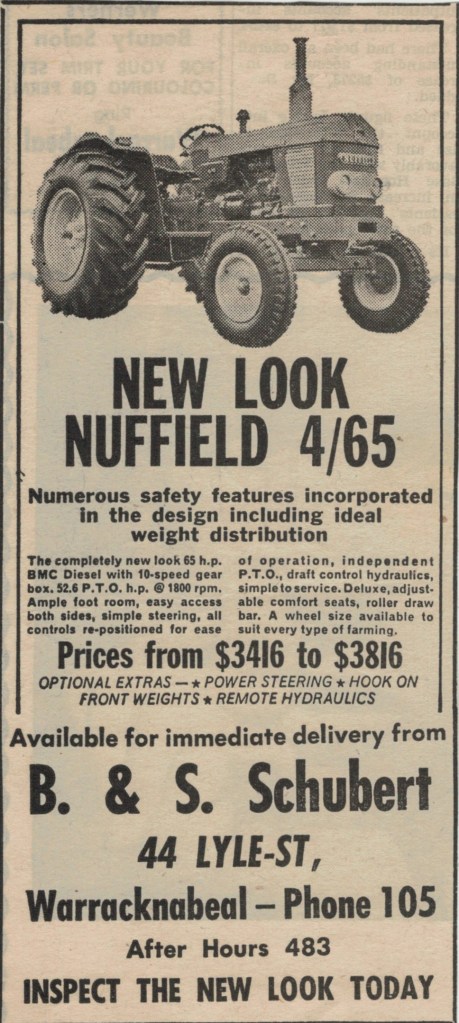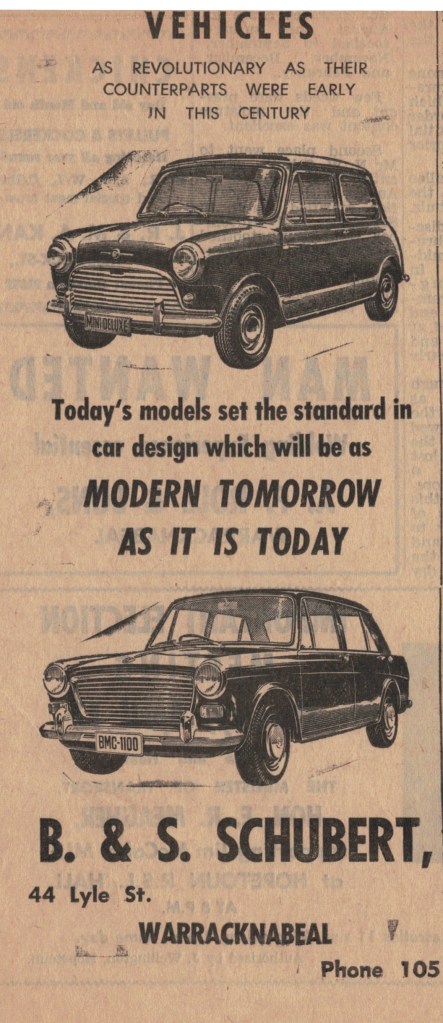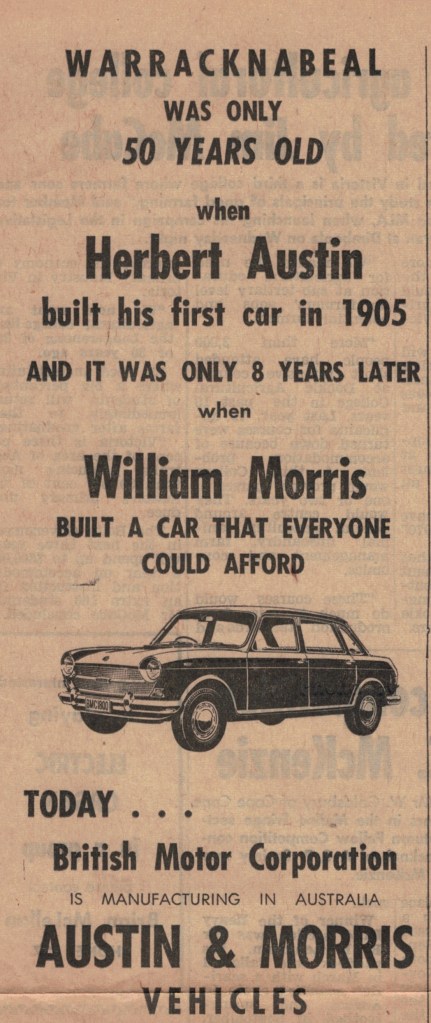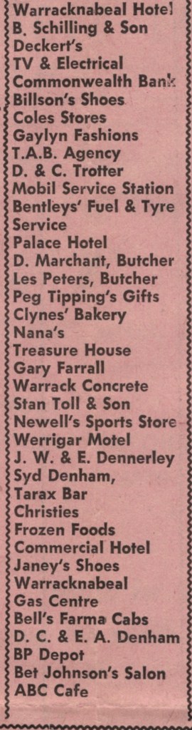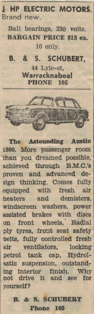 “Warracknabeal Herald”(Vic.), Friday 27 August 1965, page 6.
